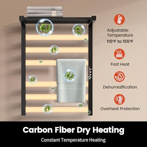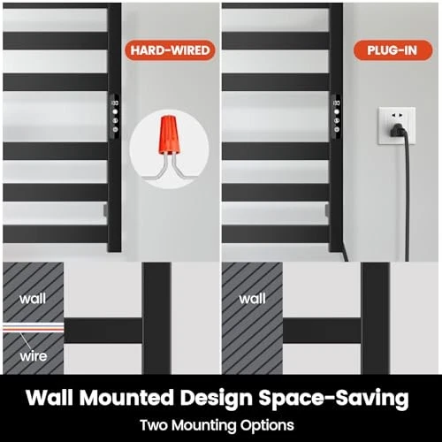 Return Policy Fast Delivery Trusted seller Tower Warmer Rack, 6 Bars Stainless Steel Wall Mounted Electric Heated Towel Rack for Bathroom, Built-in Timer, Hard-Wired & Plug in, Glossy Black (Glossy Black) Product Description Cotton Stainless Steel & IPV4 Waterproof: Stainless steel provide superior rust resistance and constant heating performance, with IPV4 Waterproof make it ideal for bathroom Larger Heating Area: Fast Heating and Prevention of Overheating. Heating Temperature range from 115°F to 155°F. Warm & Dry your clothes and towels Quick Drying: Chomolhari heated towel rack accelerates the drying process of towels, no more smelly clothes or towels, give you a luxurious experience with dry and clean bathroom Space Efficient & Wall-Mounted: Designed for space saving. You can use it as a towel rack & towel warmer Customizable Timing Options & Led Screen: You can control the heated towel rack to heat for 1 to 9 hour, or keep it heating with OH time mode Shipping Returns Payment Shipping Shipping is FREE to all addresses other than APO/PO boxes in the lower 48 states. All our stock ships from US-based warehouses. Shipped via USPS or UPS (depending on location and package weight) Unless stated otherwise, all orders will ship within 24-72 hours of your payment being processed. Check our feedback to see the great reviews of FAST shipping we offer. Returns Seller does not accept returns Payment We currently accept payment via eBay managed payments only. Once payment is cleared, we will dispatch your shipment within 1-3 business days. Please refer to the "Shipping" tab for more information regarding shipping speed to your destination.