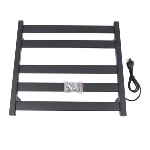 Wall Mounted Electric Towel Warmer Stainless Steel Heated 5 Towel Bar Bathroom Description Are the towels in your home often not dry and thus produce odor? Do you often have skin problems after using wet towels? Then you need a towel rack that can be heated, dried, and sterilized . Our heated towel rack can help you dry your towels to avoid the growth of bacteria . You can adjust different temperatures and set different heating times, which is very convenient and practical. This five-tier towel rack also has more than enough space to hang towels and clothes. Key Features High Load Capacity: The thickened rods make the rack very strong, with a load capacity of 33lbs per rod, which is large enough to hang most of your towels or clothes at home. Timing Function: This heated towel rack can be set for 1-8 hours of timing service, which is very thoughtful and intelligent. If you hang up your clothes to warm them before the shower, you can wear warm and comfortable clothes after showering. Great Durability : The heated towel rack is made of stainless steel with faster and more uniform heat conduction, which is mild and non-scalding. This rack is made of stainless steel with high hardness. The surface is treated by electrostatic spraying, which is wear-resistant , and rust-proof . Wall-mounted Design: This rack is wall-mounted and firmly fixed to the wall without any movement. This not only saves floor space but also ensures stability. New Heating Technology : This product uses carbon fiber heating technology, more energy efficient and more stable heating than the traditional water injection heating method. Large Space: This item has 5 rods so that it makes full use of the vertical space and provides plenty of room for items. This vertical hanging design makes it possible to hang more towels and clothes. Wide Usage: This heated towel rack can be used in daily and humid weather to dry, sterilize , heat, and other functions for the whole family's towels or clothes. You can also dry your underwear to avoid the embarrassment of drying it on the balcony. Adjustable Temperature: This heated towel rack can be adjusted to six temperatures 45/50/55/60/65/70℃, which is intimate and intelligent, giving you an exclusive and comfortable temperature. Easy Installation: The simple structure and design make the rack easy for you to install. And it comes with accessories for installation, so you can do the installation by yourself independently according to the instructions . Friendly Design: The distance of this towel rack from the wall can facilitate the insertion of the rear socket and it can avoid towels, clothing contact with the wall, and the moisture, which protects the clothing. Easy to Clean: The surface of the display rack is treated with nano baking paint, making the surface flat and smooth, so it is easy to clean. You just need to wipe it with a wet rag. Good Visual Design : The design of this heated towel rack is simple but very advanced. And the black rack is suitable for most rooms. Putting it in the bathroom or elsewhere will make the room look prettier. High Security: The surface of this heated towel rack is treated with electrostatic spraying and has IPX4 waterproof grade. Even if there is water on the surface, you do not have to worry about electrocution, use it with confidence. Intelligent Operation: There is a touch screen panel on the rack for switching on/off and setting the temperature and time. You just need to touch the panel to easily adjust the temperature and time. Details Smooth Edges: The edges of this shelf are treated to be very smooth, which not only protects the towels and clothes but also protects your or your family's head and skin. HD Display: The control panel has an HD display to show the temperature. You can clearly see the temperature value above. Long Power Cord: This product is equipped with a 4. 92 ft long power cord, so you don't have to worry about an outlet being too far away. Application This heated towel rack can be used in the bathroom or bedroom to heat, dry, and sterilize towels or clothes. Specifications Color: Black Style: Minimalism Type: 5-tier Material: Stainless Steel Surface Treatment: Electrostatic Spray ing Heating Method: Carbon Fiber Installation Method: Wall-mounted Perforated Plug Type: American Standard Temperature Control: 45℃-70℃ Timing Period: 1~8 hours Power: 200w Voltage: 110V; 60Hz Load-bearing Capacity per Rod: 15kg/33lbs Gross Weight: 2.85kg/6.28 lbs Net Weight: 2.33kg/5.13 lbs Power Cord Length: 1.5m/4.92ft Package Size: 49*55*11cm/19.29*21.65*4.33" Product Size: 50*9*46cm/19.68*3.54*18.11" Package Included 1* Heated Towel Rack 1* Pack of Screws 1* Chinese Manual Notes Please allow the slight color difference caused by the shooting light and 1-3cm error due to manual measurement, and make sure you do not mind before you order. Payment Delivery details Terms of sales About us Contact us Payment We accept ebay payment 。 Fees such as import duties, taxes are not included in the item price or shipping costs. These charges are the buyer's responsibility. Delivery details Shipping: 2-9 working days to: USA Terms of sales We maintain high standards of excellence and strive for hundred percent customer satisfaction. Feedback is very important to us. We hope that you contact us immediately before you give neutral or negative feedback, so that we can address your concerns. It is impossible to address issues if we do not know about them! About us Your satis faction is our ultimate goal. We work hard to earn your trust and future business. Our certified technicians have tested each item before shipping. The unit comes with 1 year limited warranty on all manufacturing defects. a) If you receive a defective item, you may return it or ask for a discount. Please contact us within 14 days after you receive the package. b) What you returned must be intact and in its original packaging as re? u. Customer is responsible for shipping costs of the ret