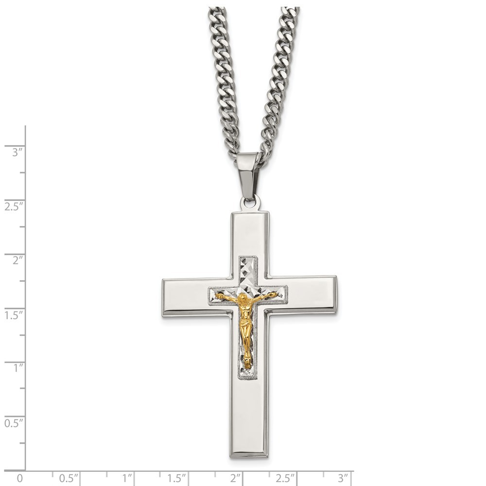 $ 48.79Stainless Steel Polished Cross Pendant Curb Chain Necklace 24 Inch 27.67g