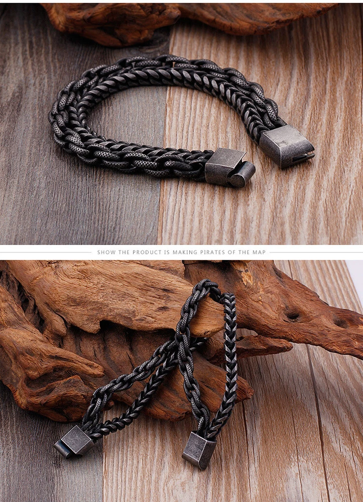 Stainless steel accessory Punk men's bracelet Titanium steel double bracelet