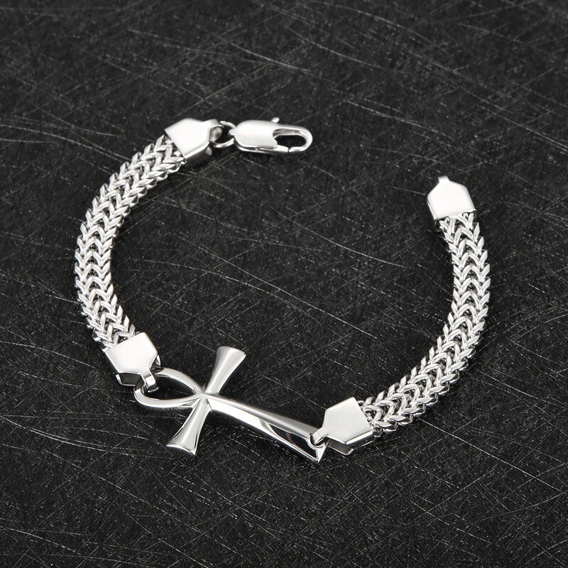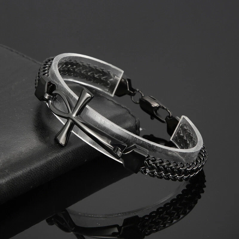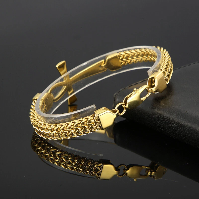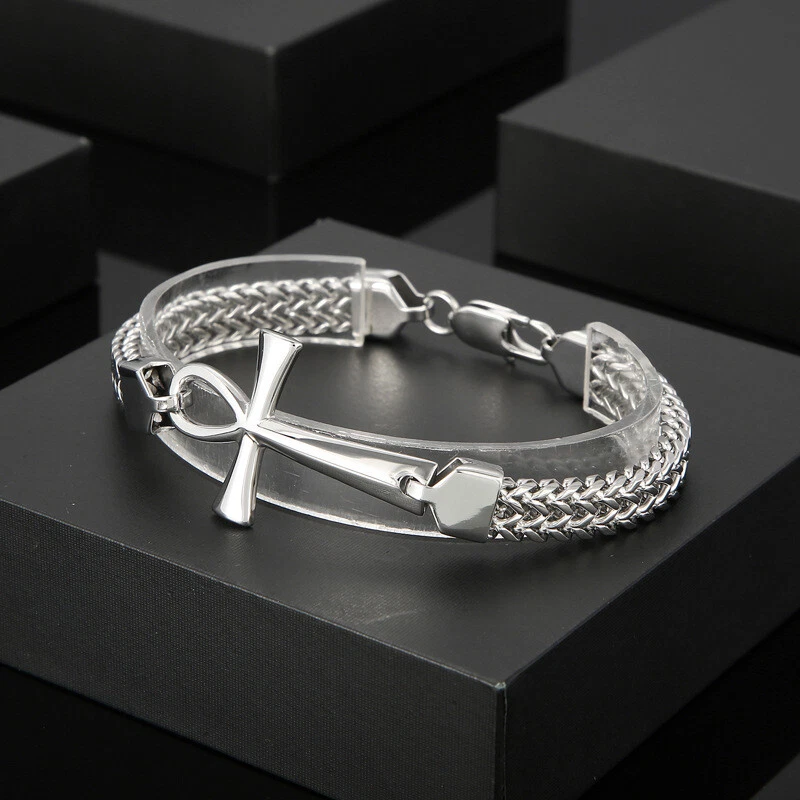 Stainless steel double row woven cross bracelet spliced titanium steel jewelry