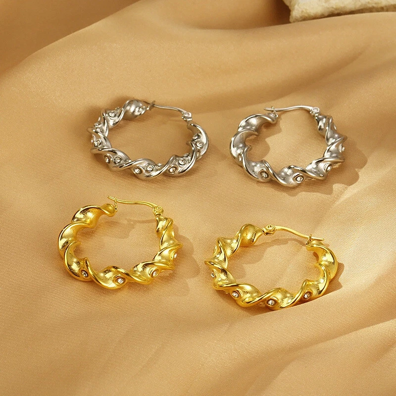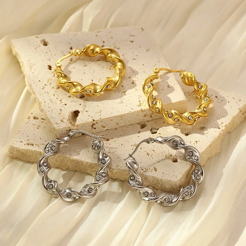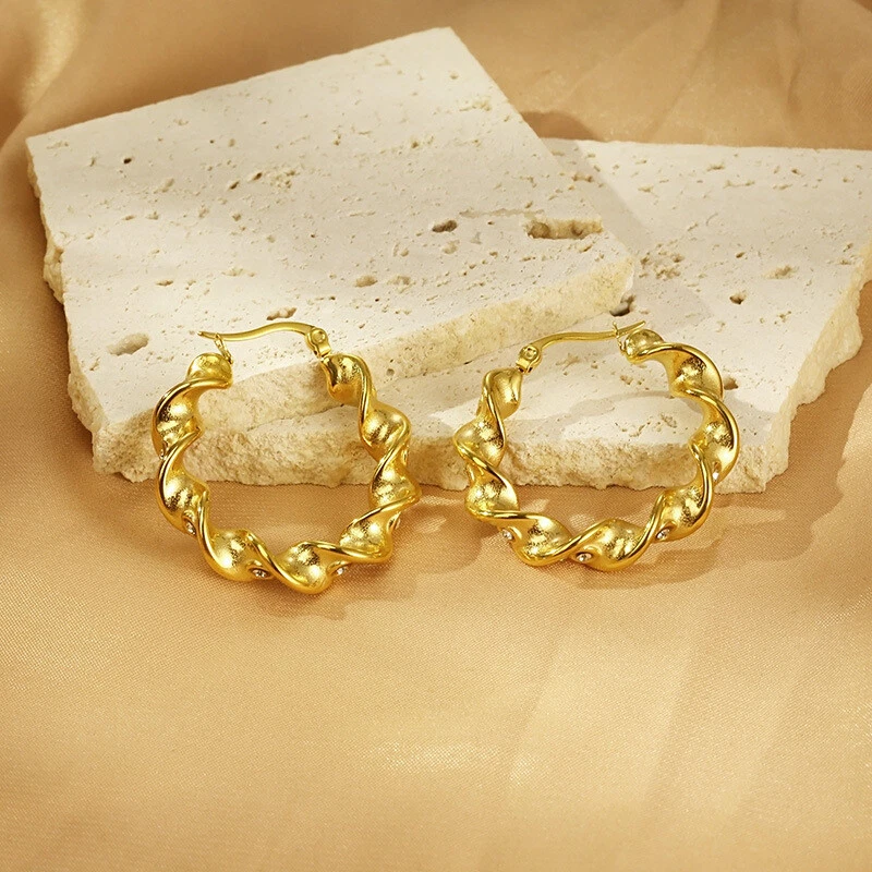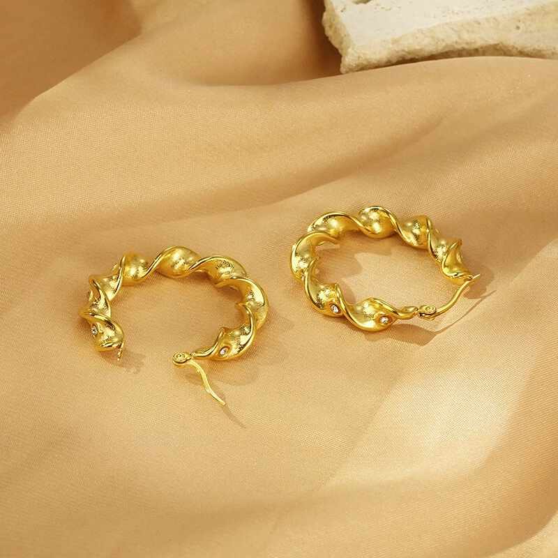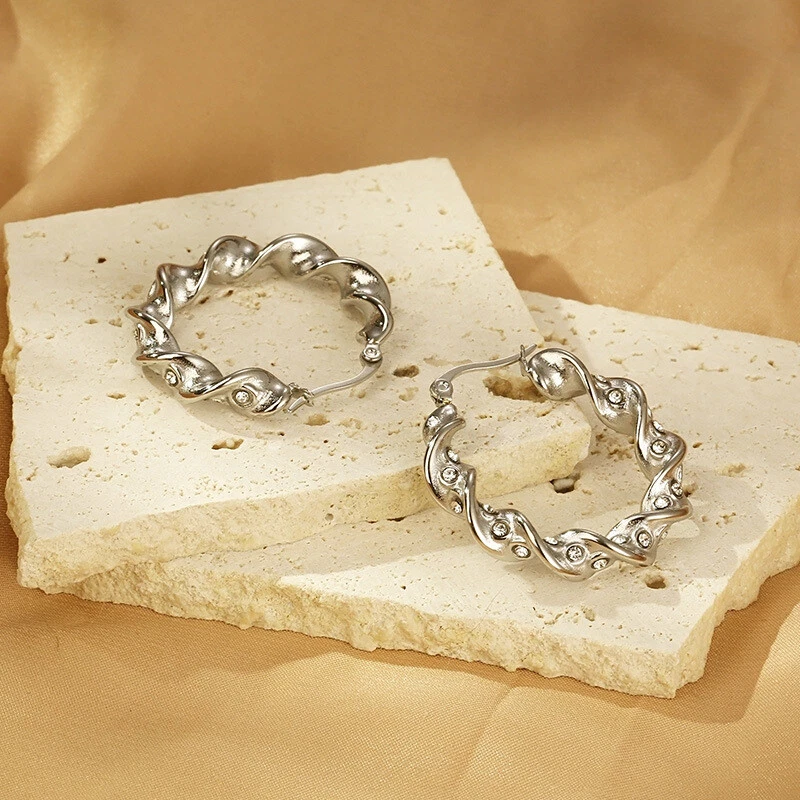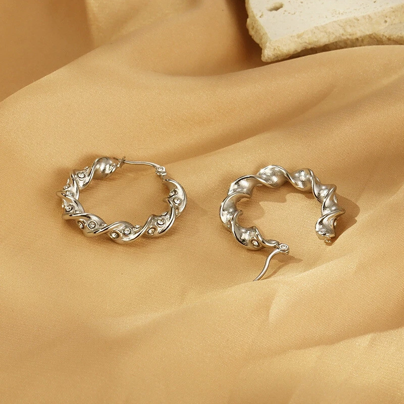 Ruffled Rose Earrings Metallic 14mm *OPTION* Hypoallergenic Stud