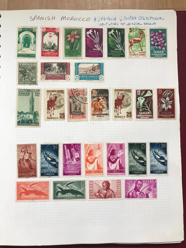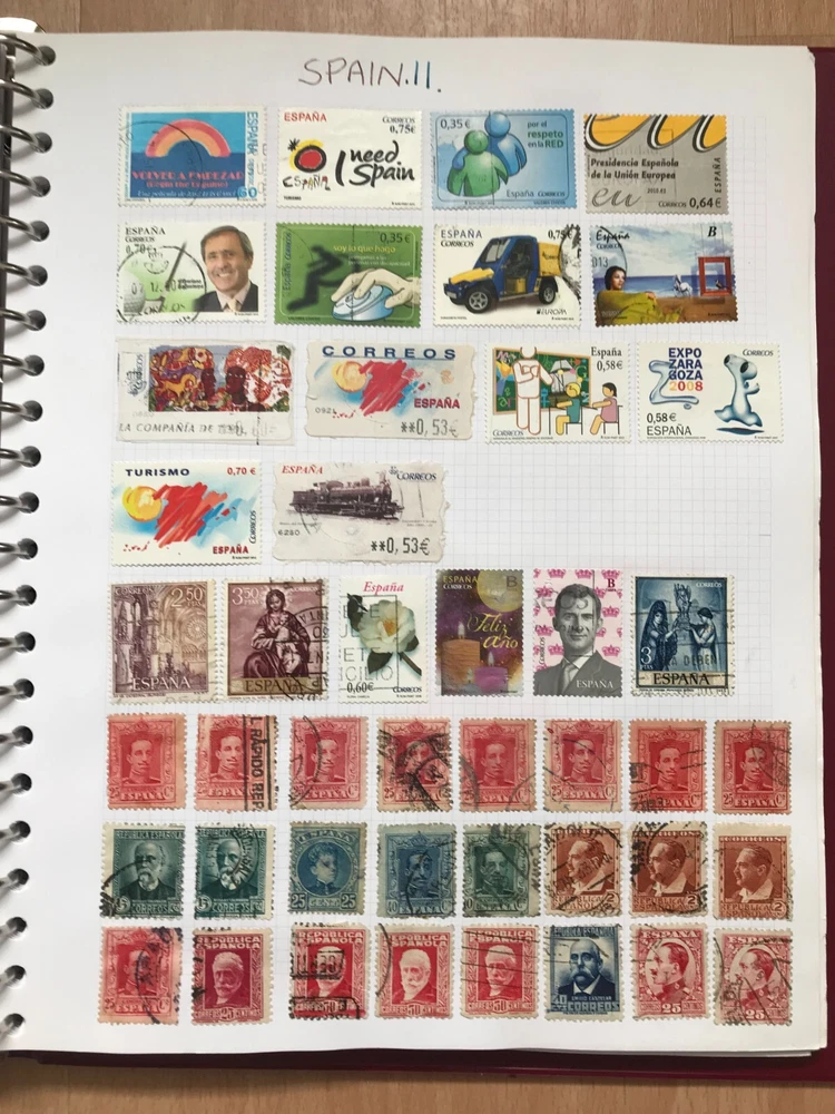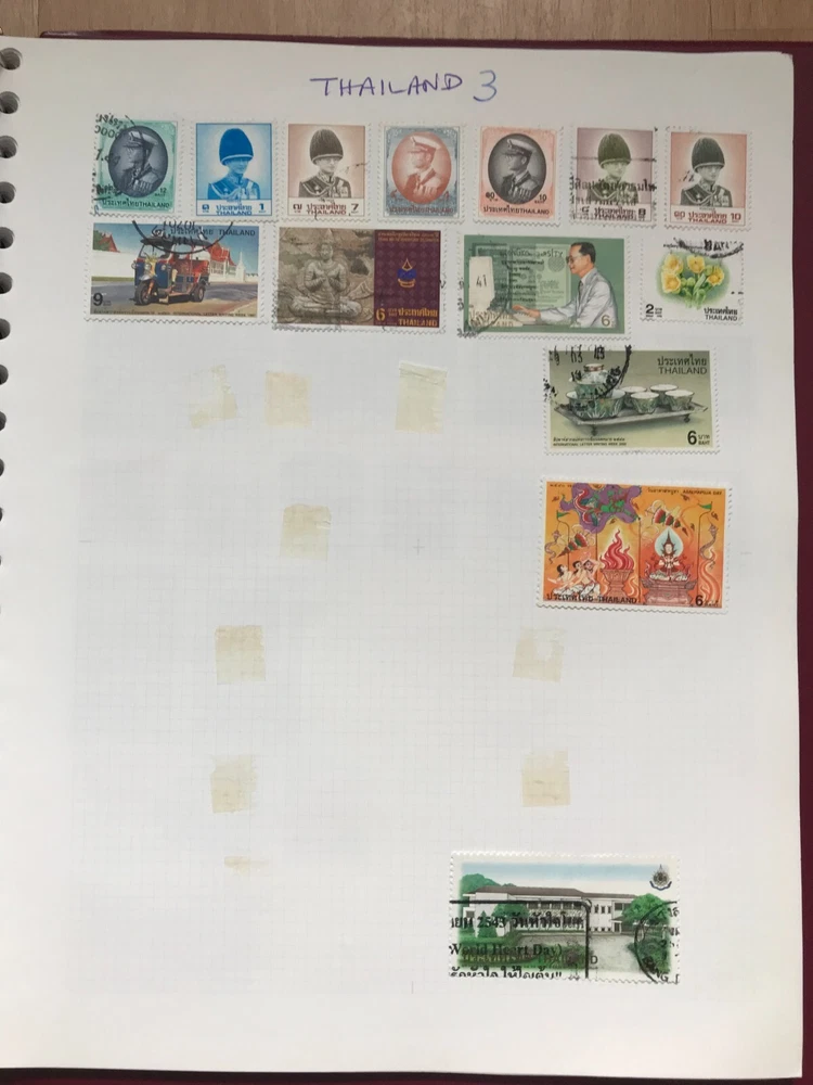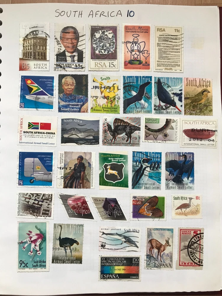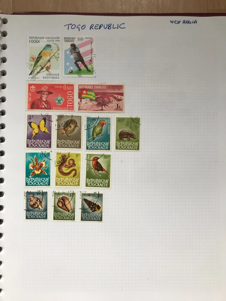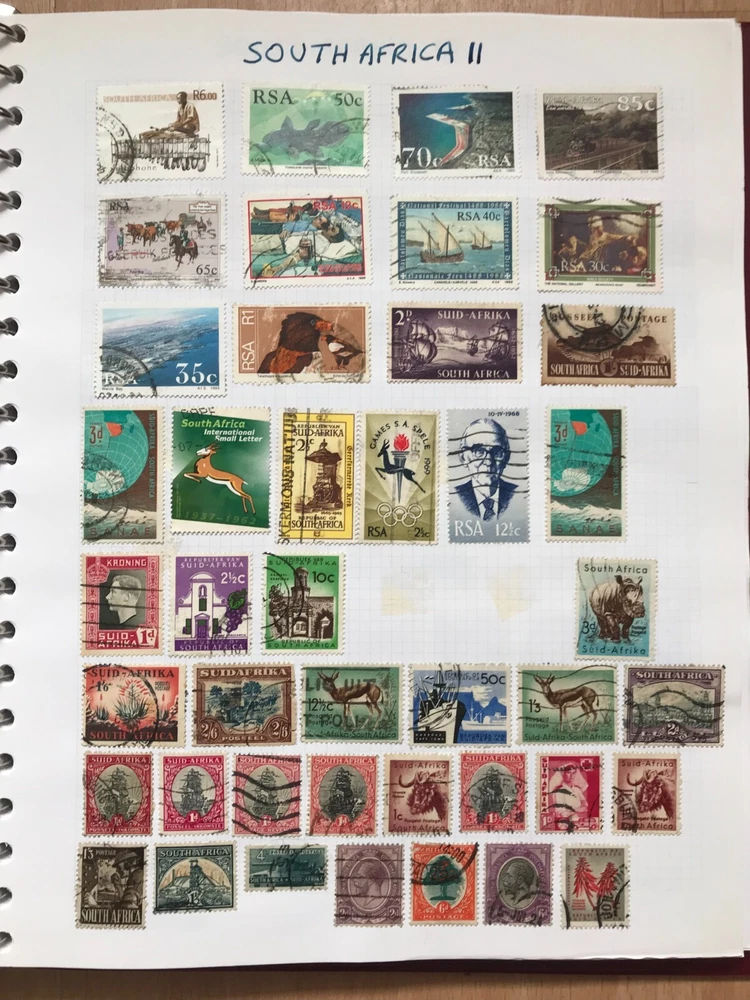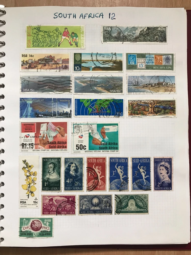 Stamp album with worldwide stamps countries Q - Z early to modern Good assortment of stamps in a w.h smith Ring binder album Please see all stamps included bellow They are hinged in the album and are unchecked by myself