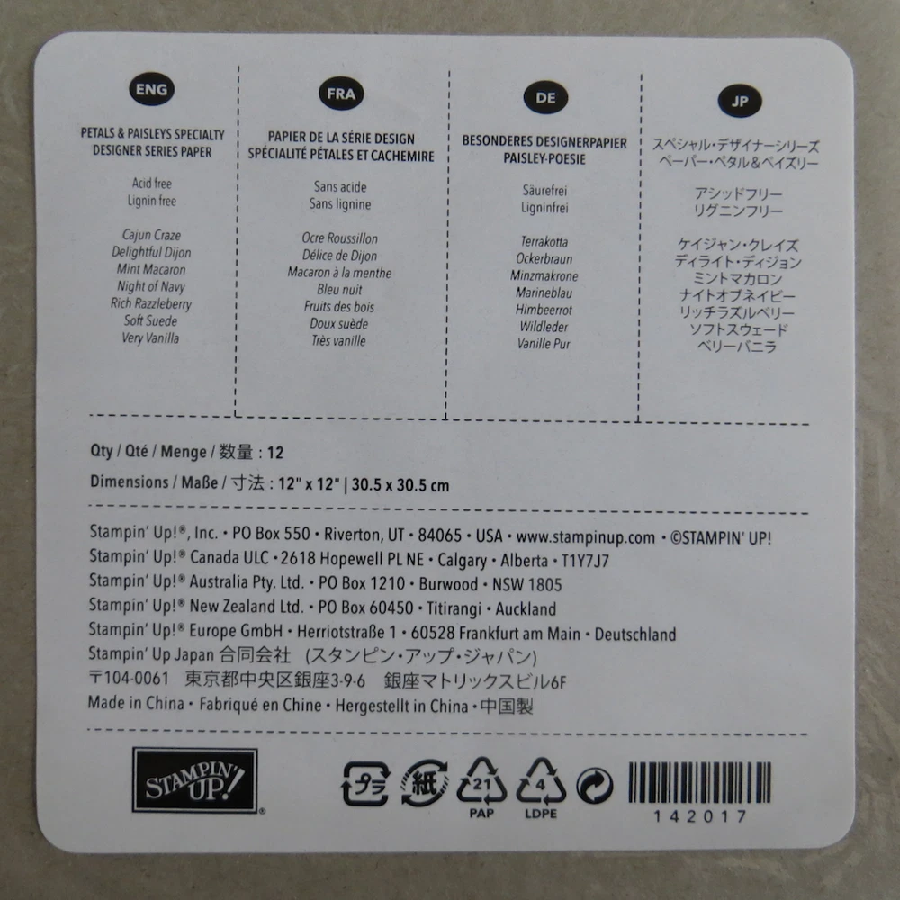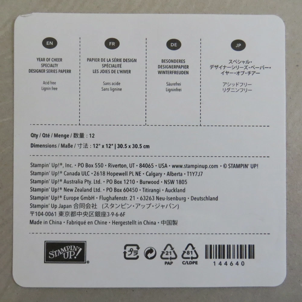 Stampin' Up 12" x 12" DSP Specialty Paper Most of the packs are open along one edge but packs are full and sheets are unused. Number of sheets per pack is shown on the label for each pack. See photos. See photos for more detail. Should you have any questions, please ask before bidding or purchasing. Click here to check out more stuff in Scritty's Basement .