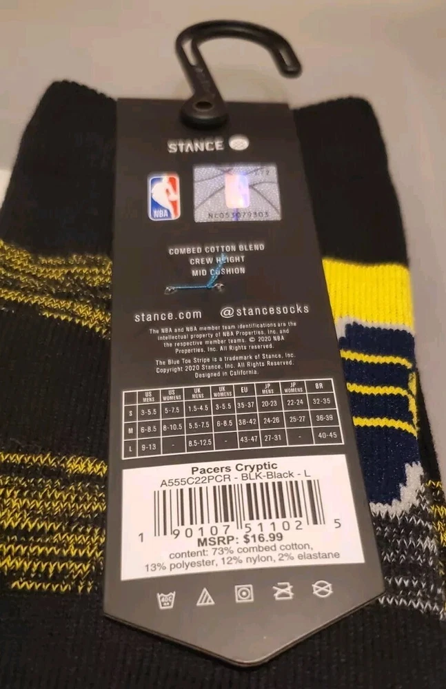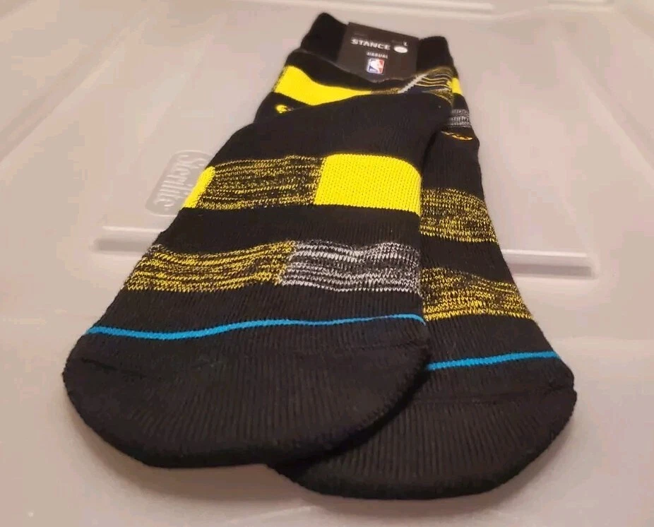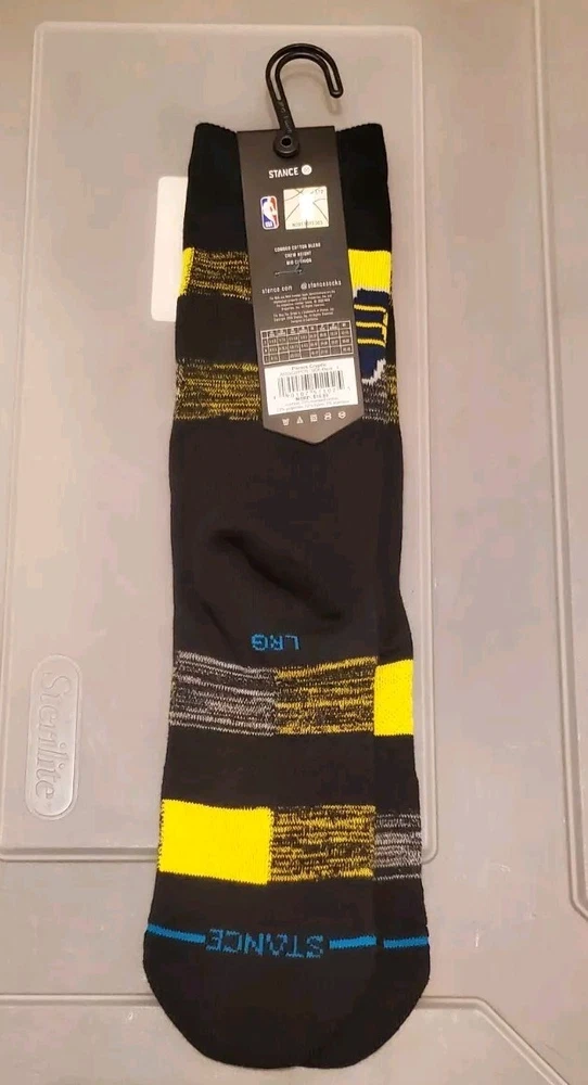 This Stance Adult Black Crew Cotton NBA Basketball Indiana Pacers Cryptic Sock is a size Large 9-13 sock featuring a unique Indiana Pacers design. Made from a comfortable cotton blend material, these mid-calf socks are machine washable and suitable for all seasons. With features like mid cushioning and arch support, these socks provide both comfort and support for casual wear or basketball activities. Perfect for any fan of the Indiana Pacers looking to add a stylish touch to their outfit while showing team spirit. Pictures are of actual socks. Brand new never worn and no defects. Feel free to contact me with any questions