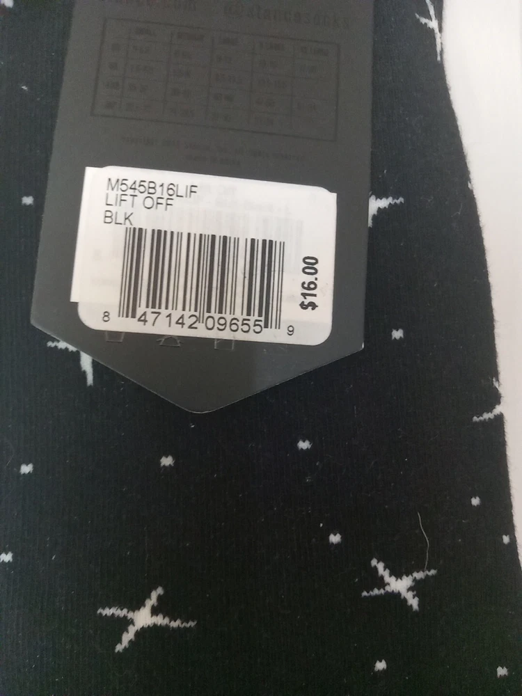 These Stance crew socks in size L feature a rocket design, perfect for space enthusiasts. Made of nylon, spandex, and cotton, they provide premium support with a full toe style. The colorful design adds a fun touch to any outfit.