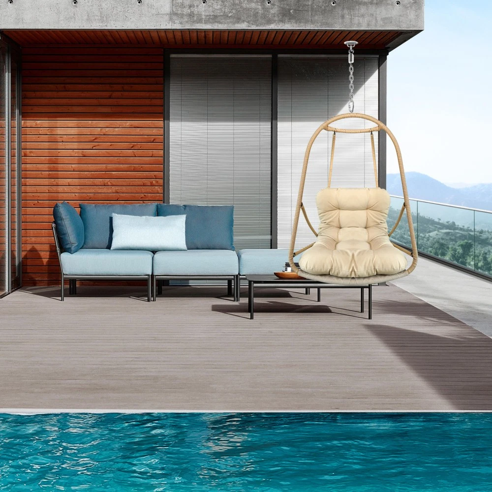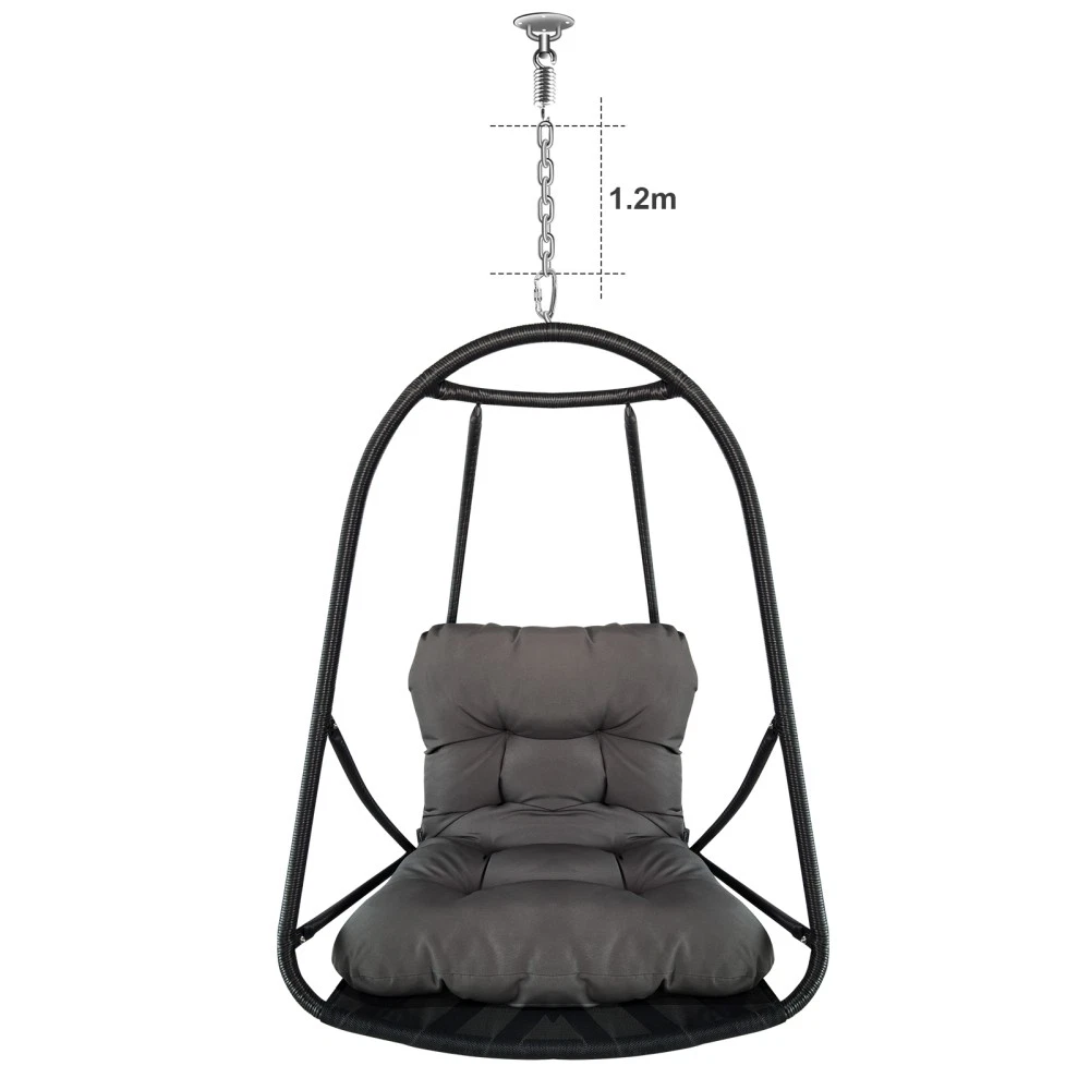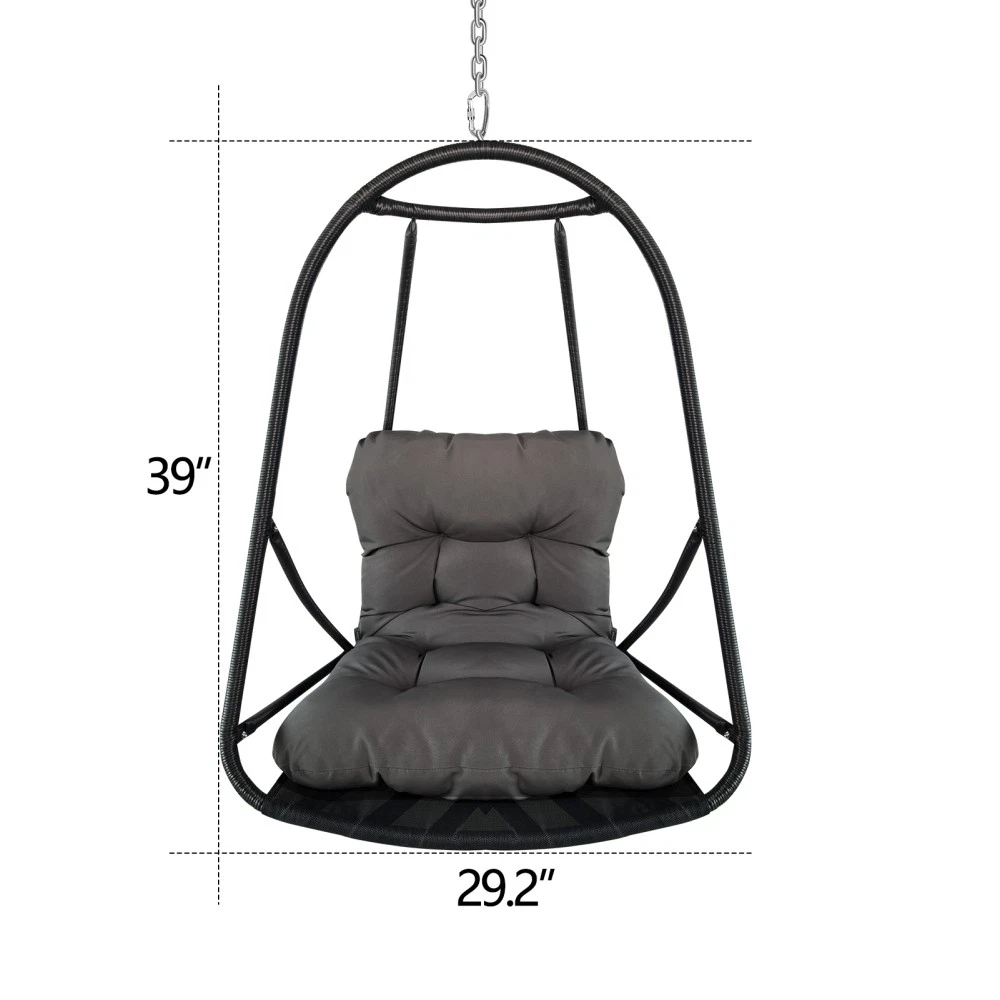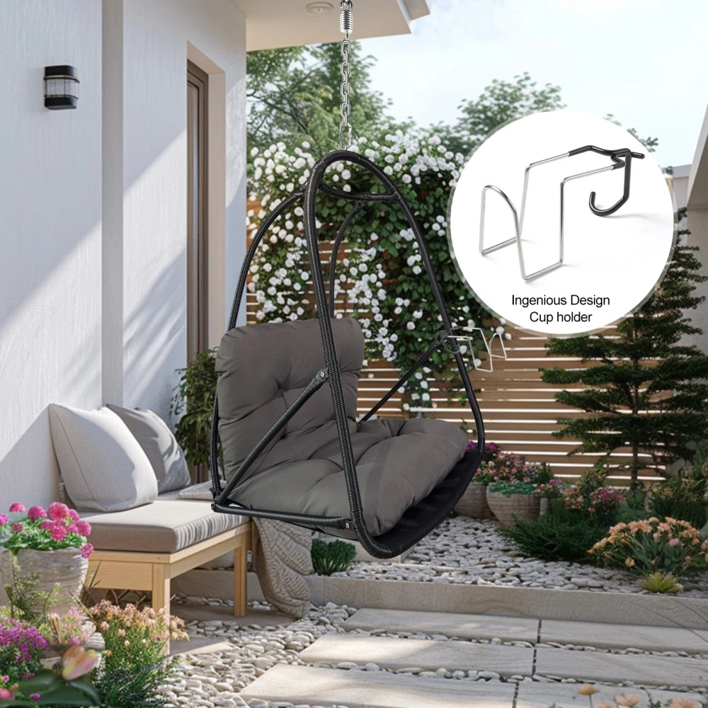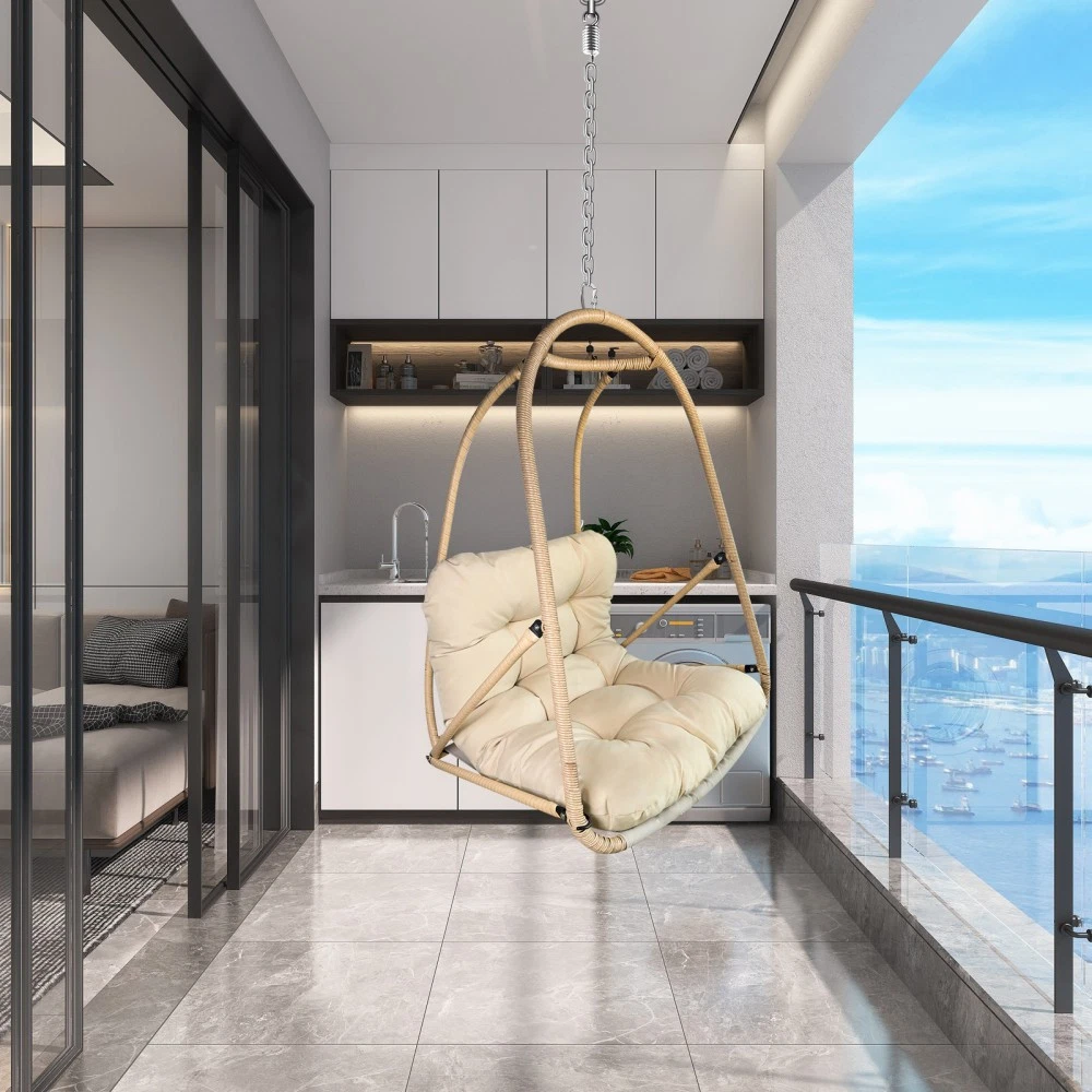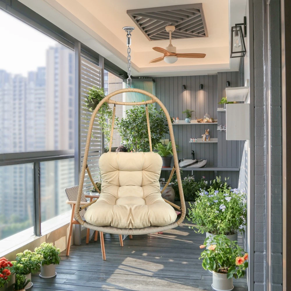 1-Year Warranty & 30-Day Free Return! Shop with confidence knowing your purchase is protected by our hassle-free warranty and return policy. If you have any issues, we've got you covered. Product Dimensions Assembled Length: 38.00 inches Assembled Width: 38.00 inches Assembled Height: 78.00 inches Product Weight: 18.00 lbs Weight Capacity: 350 lbs Packaging Dimensions Length: 43.30 inches Width: 29.50 inches Height: 6.69 inches Package Weight: 22.00 lbs Key Features ✅ Special Design with Built-in Cup Holder Keep your favorite drink within arm's reach with our uniquely designed cup holder. Perfect for enjoying coffee, iced tea, or soda while relaxing—no more balancing cups on nearby surfaces! ✅ Sturdy & Weather-Resistant Construction Crafted with a powder-coated metal frame to prevent rust and corrosion, ensuring long-lasting use both indoors and outdoors. The frame and seat are wrapped in high-quality resin wicker that offers 3-year anti-aging protection against sun, rain, and wind. Equipped with 304 stainless steel hooks and hardware, plus a 4-point support system for maximum safety and reliability. ✅ Ergonomic Comfort & Foldable Design The curved mid-back follows your body's natural shape, providing full-body support. Soft, UV-resistant thick cushion and headrest pillow reduce head and spine pressure, delivering ultimate comfort for hours of relaxation. Foldable design adds safety (prevents unsupervised play by kids) and saves space for storage or transport. ✅ Easy Assembly & Portable Everything you need is included in the box: chair, headrest pillow, seat cushion, safety strap, and all hardware. With the provided tools, one person can assemble this hanging chair in just a few minutes. Lightweight design makes it easy to move between your patio, backyard, living room, or bedroom. ✅ Perfect Gift Choice This stylish and comfortable egg swing chair is an ideal gift for kids, family, or friends on Christmas, New Year, birthdays, or other holidays. It's a great addition to any home or outdoor space! Note: This product does not include a stand. Customization services are available—please contact the seller for specific requirements.