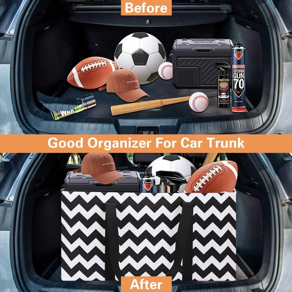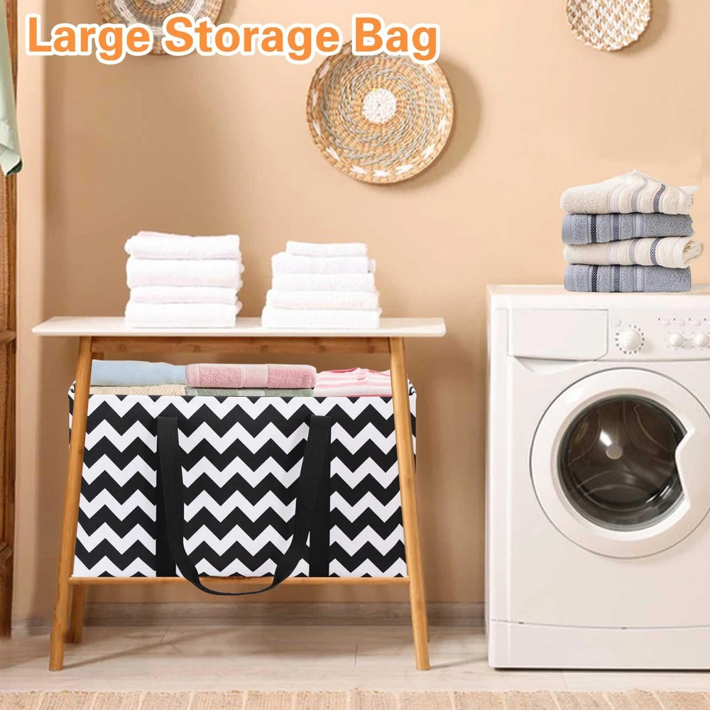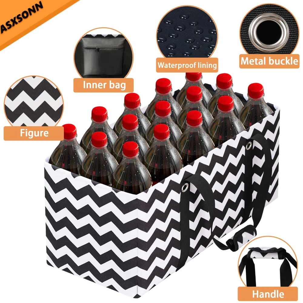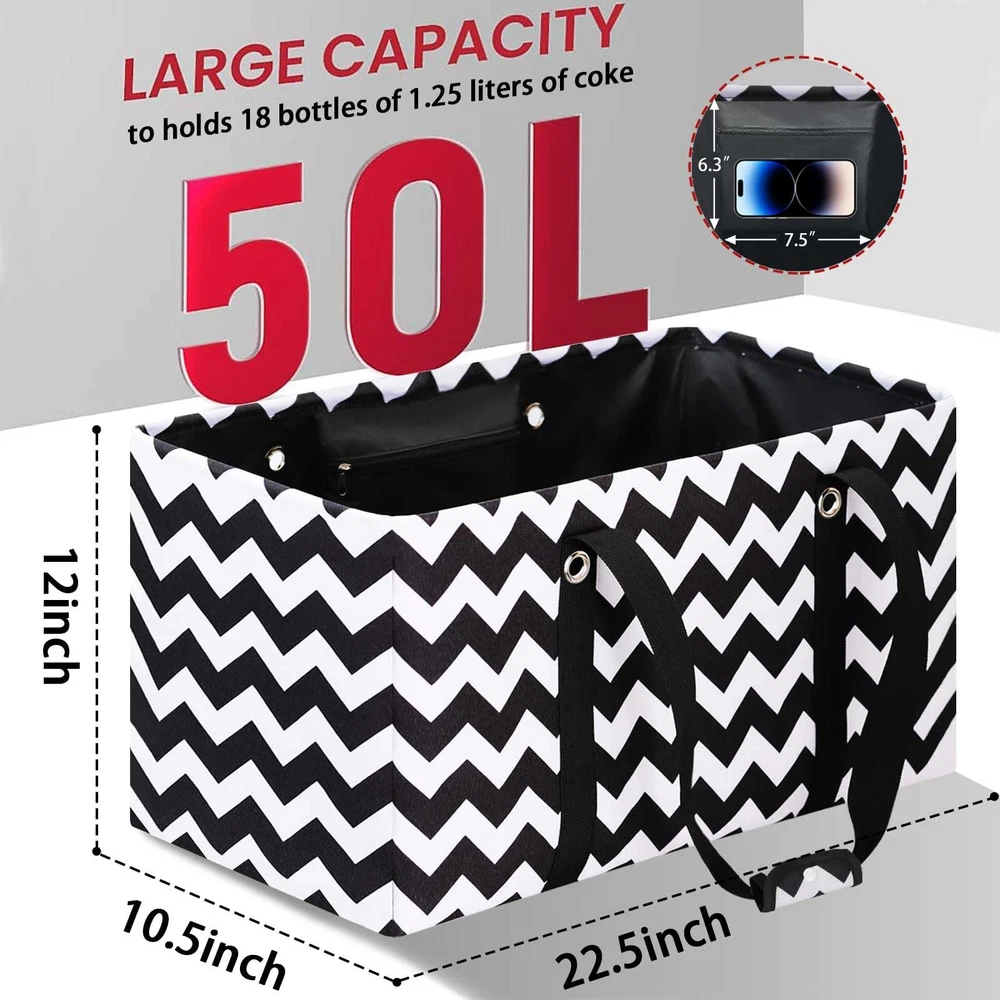 【Stand Up Design & Personalized Pattern】The bottom of the utility tote bag is designed with a removable folding bottom plate and a thick metal wire frame for the top opening, which makes the structure of the entire reusable grocery bags more stable. This design ensures that the reusable shopping bags can stand well without any load. The unique graphic style adds beauty to the large utility tote bag, making it more stylish for grocery, shopping, picnics, beach, travel and car trunk storage. 【Up to 50lbs Load-bearing】This extra large utility tote bag are made of thick Oxford-800D PVC coated cationic fabric on the outer layer and nylon on the inner layer. The sturdy and thick water-proof fabric makes it solid and durable. The handle webbing is reinforced with a metal buckle, ensuring the extra large tote bag can withstand a weight of 50 pounds. Our handles are also designed with a soft padding to provide extra support when carrying large utility tote, making carry more comfort. 【Extra Large Utility Tote】The extra large utility tote bag measures: 22.5" L x 10.5" W x 12" H, has a 46 liter capacity and holds 18 bottles (1.25 liters). The extra large utility tote provides ample space to hold a lot of daily necessities such as groceries, vegetables, fruits, bottles and jars, shoes and clothes, etc. Use this utility tote bag for shopping, which will stop the waste of single-use plastic bags. 【Inner Bag & Foldable Design】Our beach bag is designed with a small zippered pocket inside, where you can some small daily items, such as mobile phones, keys, cards, wallets, etc. This large beach bag can be folded up and stored when not in use, without taking up too much space. If the utility tote is stained, please clean it with a damp cloth and let it air dry. 【Multi-purpose Utility Tote】Utility tote bag can be used for more than just grocery runs, the large and roomy interior makes them perfect for supermarkets, grocery stores, picnics, beaches, fitness, camping, home sports, organize laundry, organize toys, organize car trunks or organize cleaning supplies.