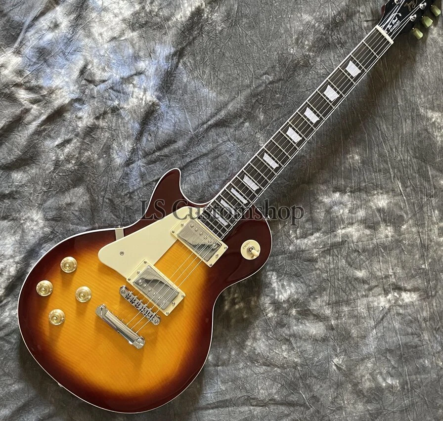 Standard LP Left Handed Electric Guitar Flame Maple Brown Burst Chrome Hardware