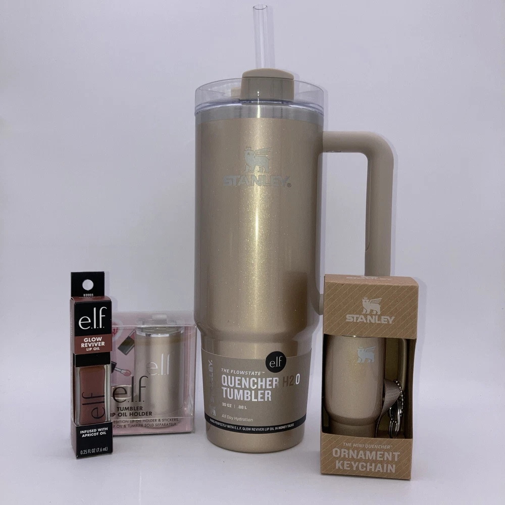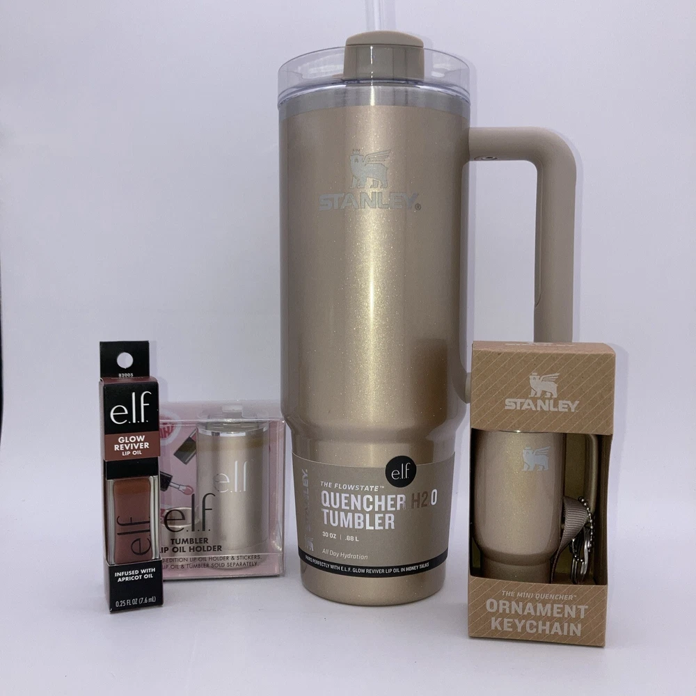 Stanley 30Oz Stainless Steel Tumbler Elf Lip Oil, Ornament, Lip Oil Holder Gold. Condition is New. Shipped with USPS Ground Advantage.