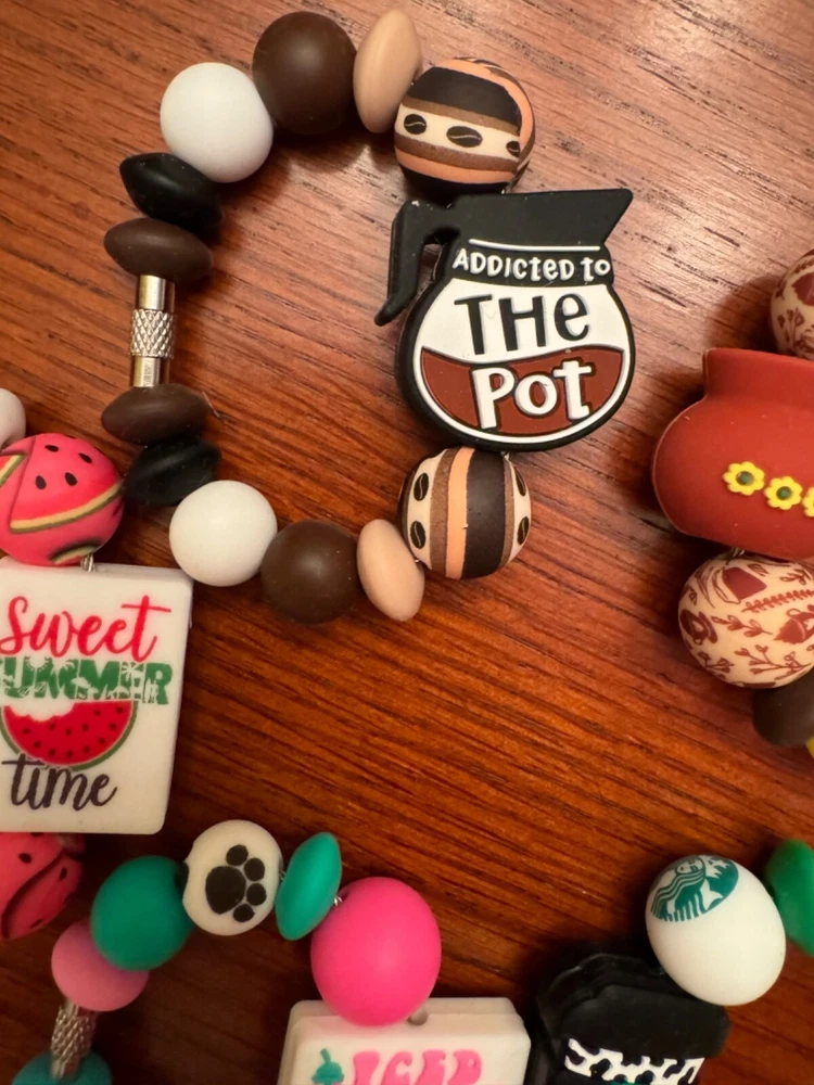 New handcrafted cup charms. Add some spooky charm to your drinks with this handcrafted Stanley Tumbler Charm. The charm is perfect for Halloween and any other occasion. It is made of durable silicone material and features a multicolor design that will make your drinks stand out. This tumbler charm is personalized and comes with care instructions to ensure it lasts a long time. Contact me with what you want done and make your drinks the envy of your friends. Add this tumbler charm to your collection and enjoy your drinks in style.