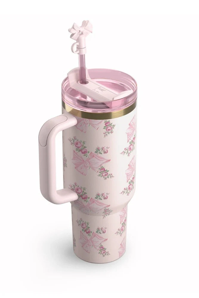 It’s time to sip fancy & festive. Our original Rosa Beaux print and gilded accents adorn the iconic Stanley Quenchers to dress up your hydration like never before. With the 40-ounce Quencher, your drink stays cold for hours, thanks to double-wall vacuum insulation. The versatile FlowState™ lid rotates to three positions: a straw opening, one for sipping and a full-cover top. An ergonomic handle makes it easy to carry, and it fits in most cup holders, too. Just for you, we’re adding a sweet straw topper with our signature bow (because everything’s better with a bow). Order Confirmed, will be shipped as soon as Delivered.