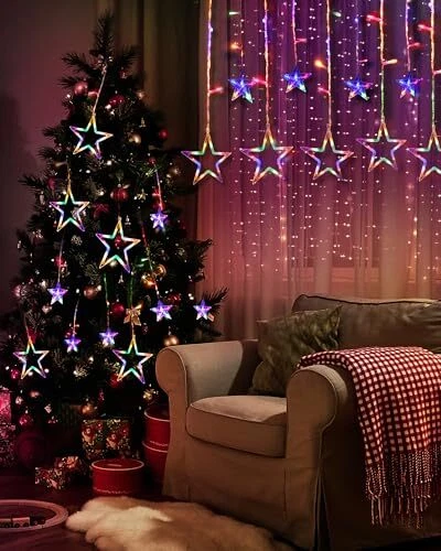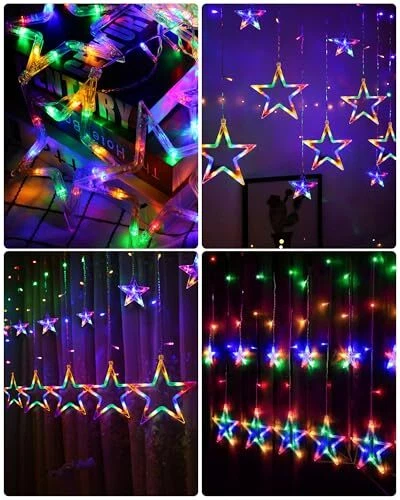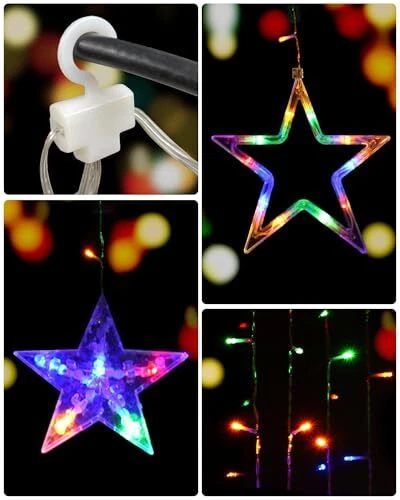Return Policy Fast Delivery Trusted seller Star Curtain Lights 138 LED 12 Star Multicolor Christmas Lights 8.2 Ft Connectable Window Lights with Remote Plug in Curtain String Lights for Christmas Ramadan Bedroom Indoor Outdoor Decor Product Description 8 Modes & Remote Control: Press the button on the plug or the remote control to set the Christmas lights between 8 modes. The remote control can also adjust brightness and set timer, which makes the twinkle lights be 6-hour on and 18-hour off Extendable Length: Our star curtain lights is 18 Ft in total, wire with LEDs: 8.2 Ft, the lead cord: 9.8 Ft, spacing between neighbouring strands: 0.72 Ft. Max 3 sets string lights can be connected together to cover a larger area Safe to Power: Approved by authoritative UL Certification, this window lights is applicable to US standard outlet. 30V low voltage, the LED Christmas lights will keep at low temperature after long time using, safe for using Unique Structure: The LED Qty of the star string lights is 138, including 12 stars( 6 big+ 6 small). The diameter of the big star is 7.9 inch, which each string droops 2 Ft. The diameter of the small star is 3.9 inch, which each string droops 1.3 Ft Adding Ambience: Per set multicolor christmas lights has 12 hooks at the top that it's easy to hang on the curtain. The hanging lights will bring more joy for indoor outdoor Ramadan, Christmas, wedding, birthday, party, bedroom, backdrop decoration Shipping Returns Payment Shipping Shipping is FREE to all addresses other than APO/PO boxes in the lower 48 states. All our stock ships from US-based warehouses. Shipped via USPS or UPS (depending on location and package weight) Unless stated otherwise, all orders will ship within 24-72 hours of your payment being processed. Check our feedback to see the great reviews of FAST shipping we offer. Returns Seller does not accept returns Payment We currently accept payment via eBay managed payments only. Once payment is cleared, we will dispatch your shipment within 1-3 business days. Please refer to the "Shipping" tab for more information regarding shipping speed to your destination.