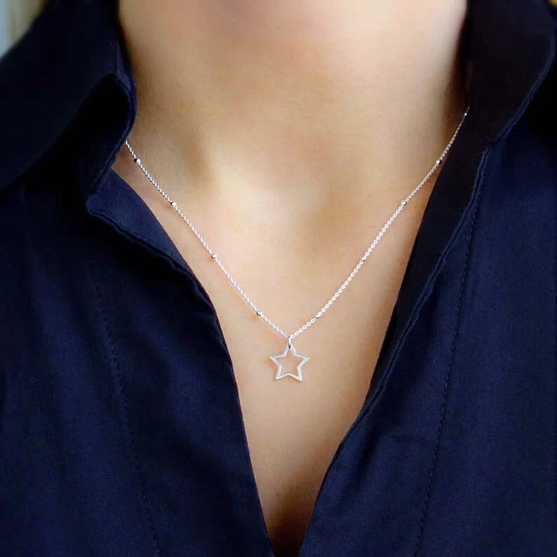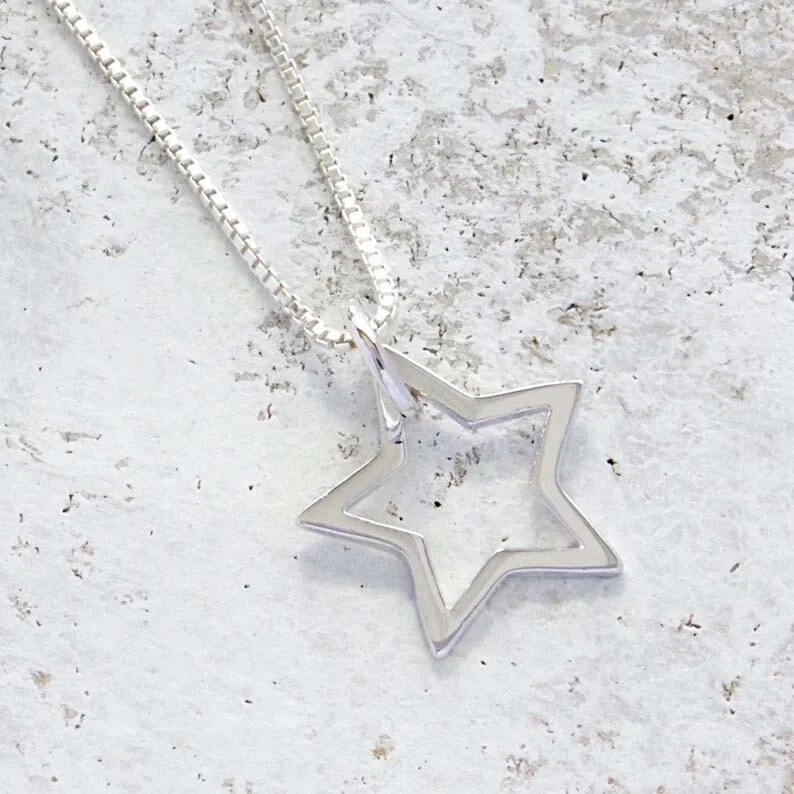 Star Outline Pendant 925 Sterling Silver Handmade Birthday Gift Star Pendant Without Chain Shine like a star with this elegantly designed Star Outline Pendant crafted from genuine 925 sterling silver. A symbol of hope, inspiration, and infinite possibilities, this minimalist pendant is the perfect accessory to add a touch of sparkle to any outfit. Whether you’re celebrating a special occasion or looking for a unique gift, this handmade pendant is an ideal choice for starry-eyed dreamers and stylish jewelry lovers alike. Features and Design This pendant features a sleek, open-star outline design that radiates charm and simplicity. Its versatile style ensures it can be worn for any occasion, making it a must-have addition to your jewelry collection. Minimalist Design : Clean and modern, perfect for casual or formal looks. Handcrafted Elegance : Each piece is made with precision, ensuring a unique, high-quality finish. Lightweight and Comfortable : Ideal for everyday wear or as a statement piece. Versatile Appeal : A great accessory for women of all ages. Premium Quality Materials Crafted from genuine 925 sterling silver , this pendant combines durability with timeless beauty. Its polished surface enhances the pendant’s radiance, making it a standout piece in any jewelry collection. Material : Solid 925 Sterling Silver Finish : Polished for a brilliant shine Hypoallergenic : Safe for sensitive skin Specifications Pendant Dimensions : Star Outline Weight : Light Weight and Comfort Wear Bail Opening : Without Chain Chain Not Included : Pair with your favorite chain for a personalized touch. A Starry Gift for Every Occasion The Star Outline Pendant is more than just a piece of jewelry—it’s a meaningful gift that shines with thoughtfulness. Whether you’re celebrating a birthday, anniversary, or any other special moment, this pendant is sure to make the recipient feel truly special. Birthday Gift : A unique and heartfelt token for someone you love. Holiday Surprise : A dazzling Christmas or New Year’s gift. Milestone Celebrations : Perfect for graduations, promotions, or life’s big achievements. Everyday Token : Show appreciation for someone special “just because.” This pendant arrives in a beautiful gift box , ready to delight your loved ones. Symbolism of the Star The star has long been a symbol of guidance, hope, and dreams. Worn as a pendant, it serves as a reminder to keep reaching for the stars and to always stay inspired. Its timeless design and meaningful symbolism make it a perfect choice for anyone who cherishes celestial beauty. Styling Tips This versatile pendant can be styled effortlessly to match your personality and wardrobe: Pair it with a delicate silver chain for a classic, elegant look. Layer it with other celestial-themed necklaces for a trendy, bohemian vibe. Match it with sterling silver earrings or bracelets for a coordinated ensemble. Its lightweight design ensures it’s comfortable to wear all day long, whether at work, a party, or a casual outing. Care Instructions To keep your Star Outline Pendant looking radiant: Avoid Chemicals : Remove before swimming, bathing, or using cleaning products. Store Safely : Keep it in a jewelry box or pouch to prevent scratches and tarnishing. Clean Gently : Use a soft cloth or silver polishing cloth to maintain its shine. With proper care, this pendant will remain a cherished piece for years to come. Why Choose This Pendant? Handcrafted Quality : Each piece is made with care, ensuring a unique and high-quality design. Timeless Symbolism : Combines celestial charm with modern style. Affordable Luxury : Offers exceptional value with premium materials and craftsmanship. Fast and Reliable Shipping We take pride in ensuring a smooth and delightful shopping experience: Secure Packaging : Your pendant will arrive safely in an elegant gift box. Quick Dispatch : Orders are processed and shipped promptly. Customer Support : We’re here to help with any questions or concerns. Order Yours Today! Add a touch of celestial elegance to your jewelry collection with this 925 Sterling Silver Star Outline Pendant . Whether for yourself or as a gift, this pendant is a timeless reminder to always aim high and dream big. Click “Buy Now” and make this stunning star pendant yours today!