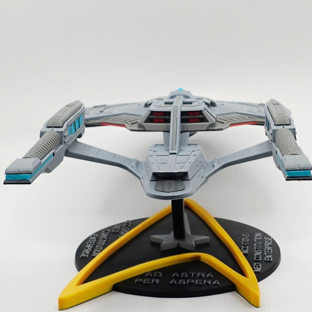 🚀 Star Trek Enterprise G Neo Constitution Class – 3D-Printed Fan-Made Starship Model Command the next generation of starships with this beautifully crafted Enterprise G model! Inspired by the Neo Constitution Class design, this 3D-printed display piece captures the elegant curves and refined detailing of the flagship from Star Trek: Picard Season 3. Each ship is made-to-order and produced in full-color PLA filament—no painting or assembly required. The included display stand showcases the ship in flight, making it perfect for any collection or sci-fi display. 📏 Dimensions: • Length: approx. 18 in (45.7 cm) • Width: approx. 9 in (22.8 cm) • Height on stand: approx. 6 in (15 cm) • Includes a matching display stand 🌟 Key Features: • Screen-inspired design – Detailed recreation of the Neo Constitution Class Enterprise G • Full-color 3D print – Multi-color PLA filament eliminates the need for paint • Display stand included – Designed to showcase the ship in an elegant flight position • Lightweight & durable – Great for display, desk décor, or collector shelves • Handmade in the USA – Each model is 3D-printed, finished, and checked by hand 🎨 Materials: High-quality PLA plastic (multi-color filament) using precision 3D printing for smooth detail and a handcrafted finish. 📦 Shipping: Made to order and ships within 5–7 business days. Securely packaged with tracking included for every order. ⚠️ Disclaimer: This is a fan-made collectible inspired by Star Trek. It is not officially licensed or endorsed by any rights holders. 🧡 From Uthinkitsolutions: We love bringing sci-fi imagination to life through handcrafted 3D prints. Every purchase supports our small business and keeps fandom creativity thriving across the stars! ✨ Add this flagship to your fleet — and display it with pride!