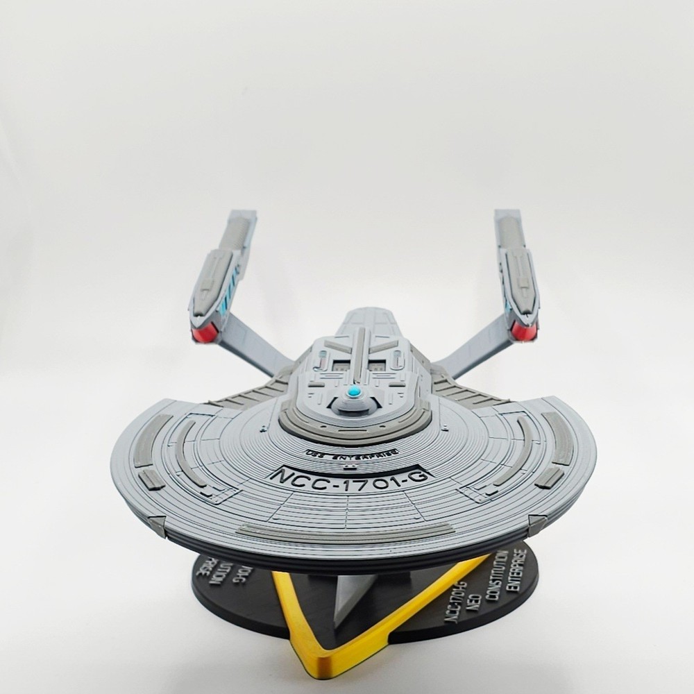 Enterprise G model is OUTSTANDING! GREAT QUALITY AND DETAIL ON THE SHIP! Hope they make more large Star Trek ships like the Enteprise C and Enterprise F.