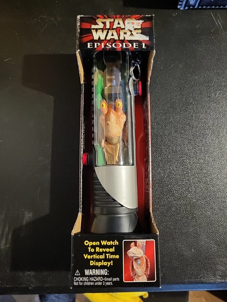 Brand new jar jar binks watch in qui-gon jinn case, never opened. See pictures for overall condition.