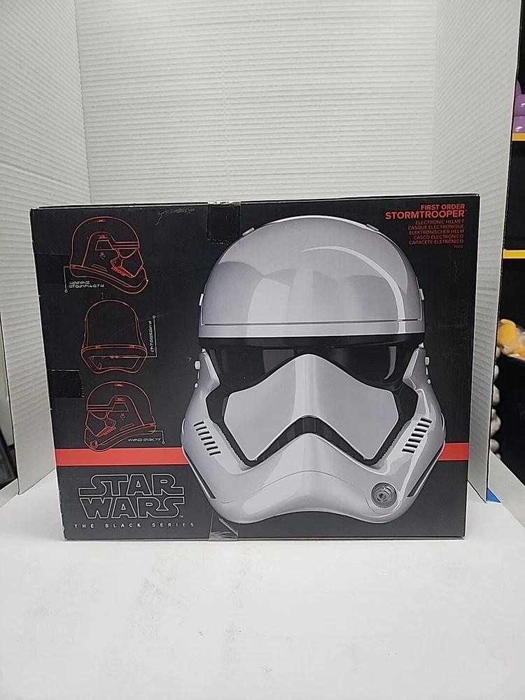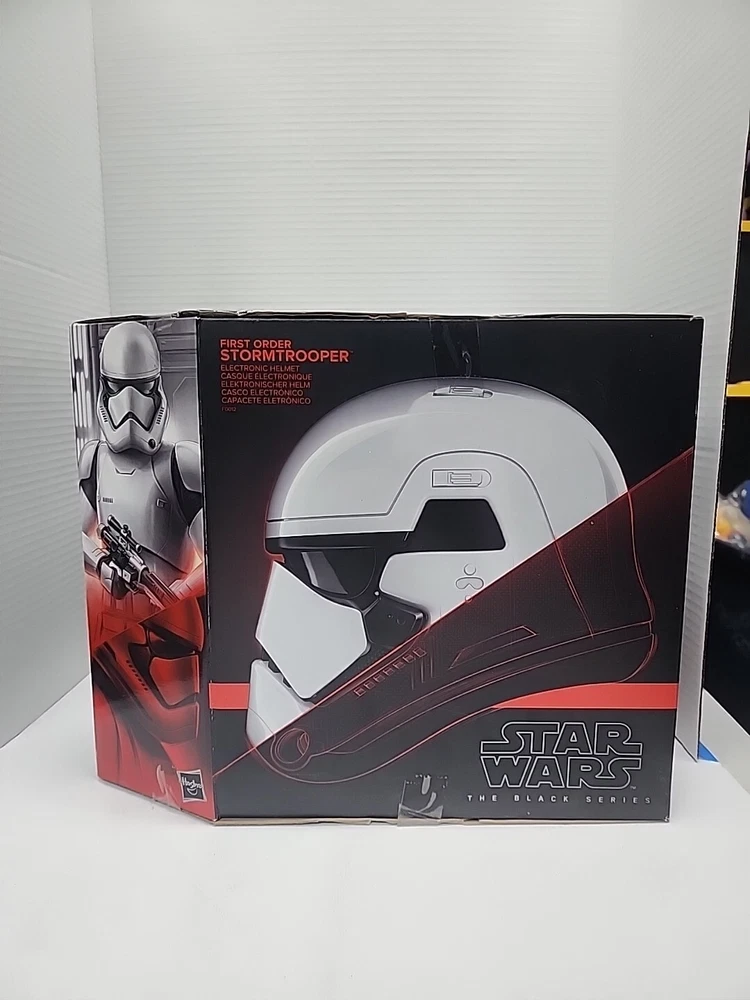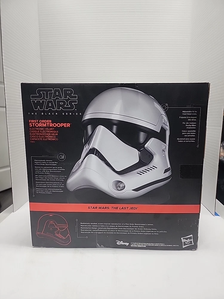 This incredible electronic helmet features the iconic First Order Stormtrooper character from the eighth Star Wars movie, The Last Jedi. With its sleek design and voice-changing technology, this helmet is a must-have for any science fiction and horror fan. The helmet is part of Disney's The Black Series collection and is perfect for cosplay or display. The helmet is made for collectors and fans alike, with its intricate details and realistic design. It is not signed, but it is sure to impress. This item is perfect for anyone who wants to add a touch of the Star Wars franchise to their collection.
