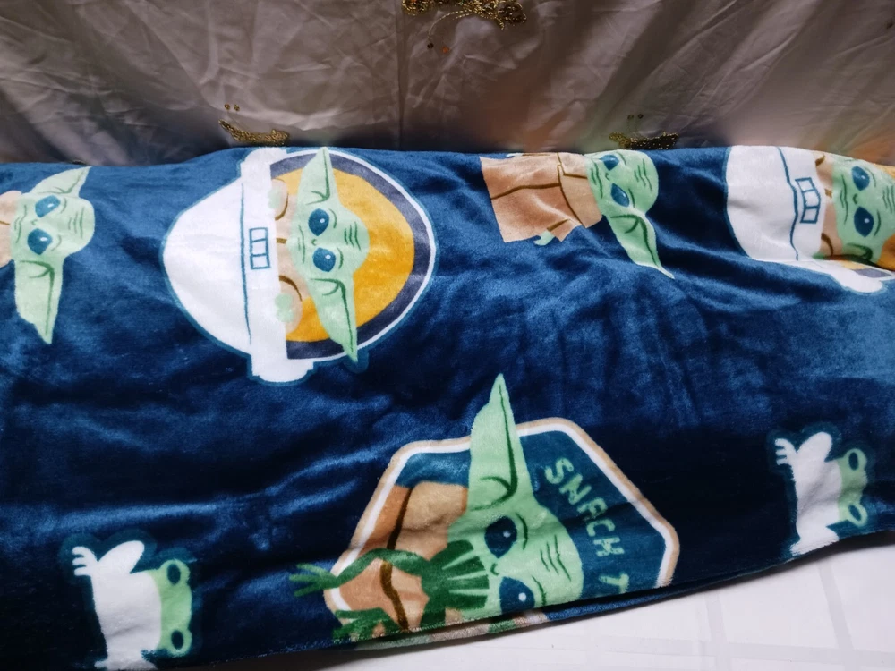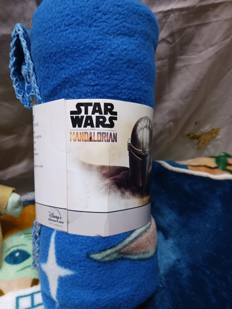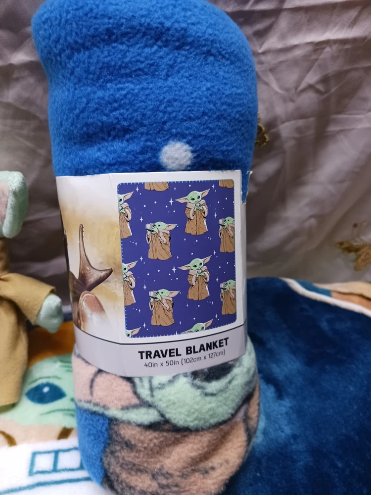 Star Wars Madalorian baby yoda lot. Includes big blanket (apron 60×90) , travel blanket, Plush, and night light. **big blanket and plush in like new condition. Only used once on plane flight with granddaughter. **travel blanket and night light are new.