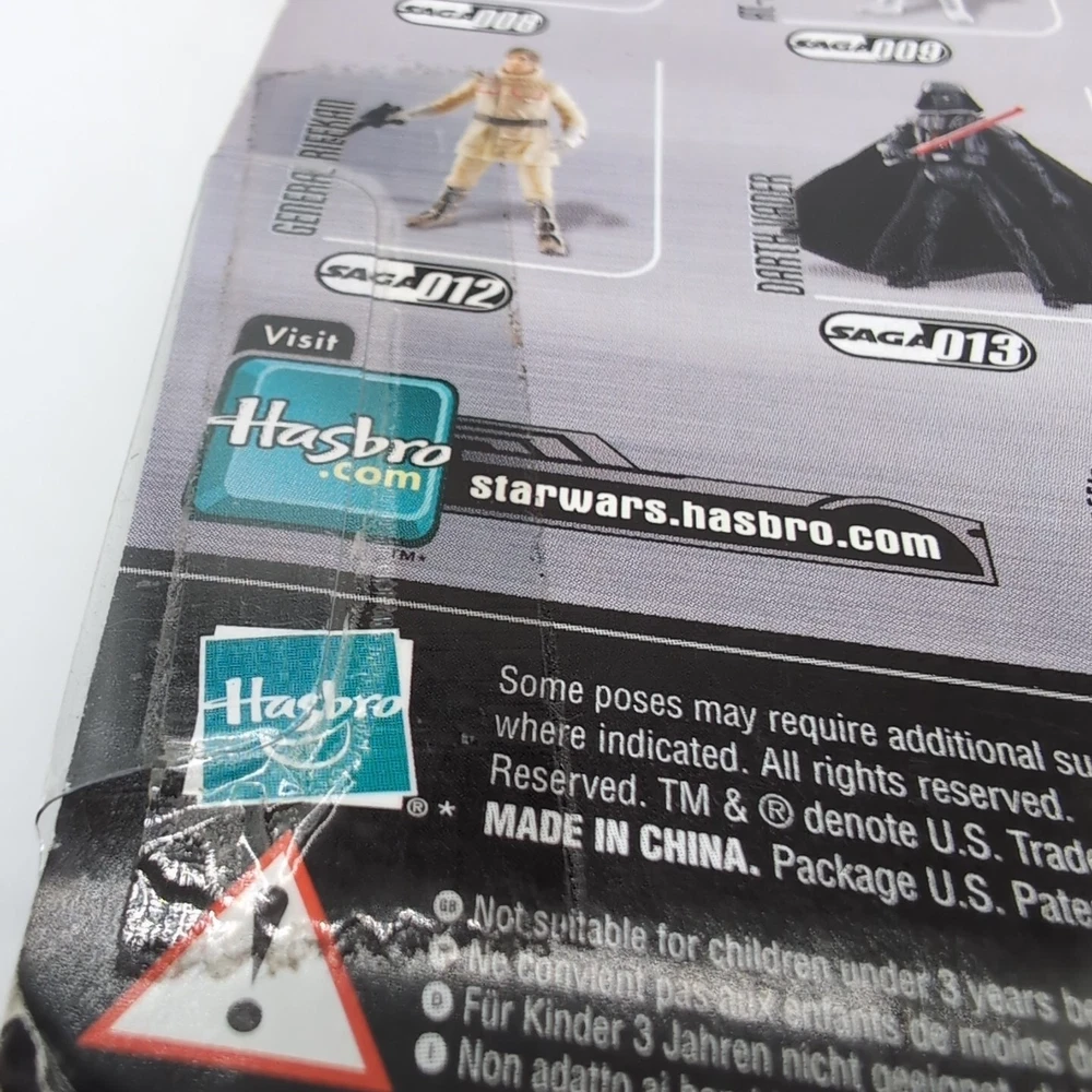 Hasbro Star wars R2-D2 action figure new in original package. For ages 4plus. The edges of the plastic cover has Scotch tape where it wraps around the back. I'm not sure if it came that way or if someone did that.