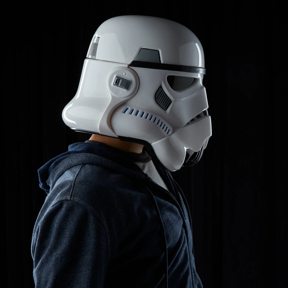 Star Wars The Black Series Rogue One: A Star Wars Story Imperial Stormtrooper Electronic Helmet Product Description With exquisite features and decoration, Star Wars The Black Series embodies the quality and realism that Star Wars devotees love. Star Wars The Black Series includes figures, vehicles, and roleplay items from the 40-plus-year legacy of the Star Wars galaxy that includes the Star Wars comics, Star Wars movies, and Star Wars animated series. (Additional products each sold separately.) Wearing imposing white armor, Stormtroopers wield blaster rifles and pistols with great skill, and attack in hordes to overwhelm their enemies. Push the button on the side of this movie-accurate authentic Stormtrooper helmet replica, inspired by Rogue One: A Star Wars Story, to electronically distort voice into that of an Imperial Stormtrooper. This premium Star Wars roleplay item is a great gift for Star Wars fans, and collectors can display it in their Star Wars collection. Includes: helmet and instructions. + STAR WARS THE BLACK SERIES HELMET – Imagine getting into roleplay as a Star Wars Stormtrooper with the Imperial Stormtrooper Electronic Voice Changer Helmet inspired by the Star Wars movies. + SOUND LIKE AN IMPERIAL STORMTROOPER – Push the button on the side of the helmet to electronically distort voice to sound like an Imperial Stormtrooper from the Galactic Empire! + STAR WARS MOVIE-ACCURATE REPLICA - Inspired by the loyal soldiers of Rogue One: A Star Wars Story, the authentic Imperial Stormtrooper roleplay helmet is a great gift for Star Wars collectors and fans. + PREMIUM DESIGN AND DETAIL - Featuring realistic detail, the Imperial Stormtrooper Electronic Voice Changer Helmet is a premium roleplay item that makes a great addition to any Star Wars collection. + HIGH QUALITY COLLECTIBLES – Look for Star Wars The Black Series figures and roleplay items to expand and enhance any Star Wars collection or display. (Additional products each sold separately.) Ages 8 and up. WARNING: CHOKING HAZARD – Small parts may be generated. Not for children under 3 years. x3 1.5v AAA ALKALINE BATTERIES REQUIRED. Not included. Some assembly required. No tools necessary.