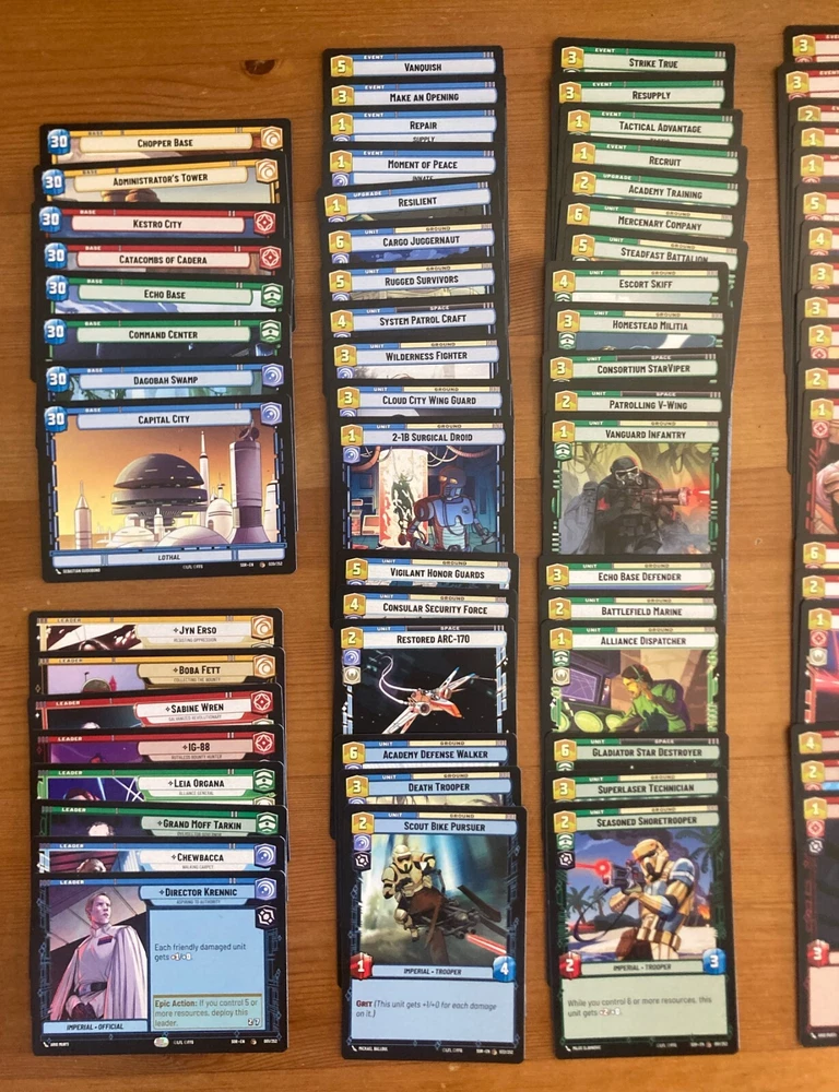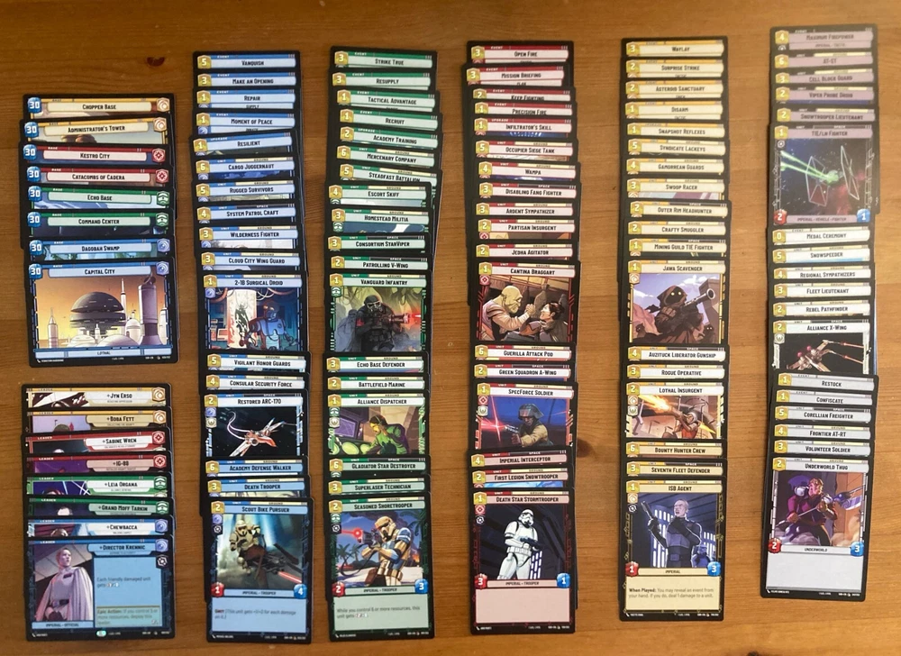 This is a complete collection of all common cards in the Star Wars Unlimited TCG Spark of Rebellion set. It contains 106 cards including: 8 leaders 8 bases 90 units, events, and upgrades There is exactly one of each common card in the set. There are no duplicates. All cards are in mint/near-mint unplayed condition. There are no special, uncommon, rare, legendary, showcase, promo, foil, or hyperspace cards included. This is a great way to start or grow your collection. It also makes a great gift for someone interested in the game. Request combined shipping at checkout if you want to add more than one set. Contact me before purchase if you have any questions. I hope these cards become part of a beloved collection!