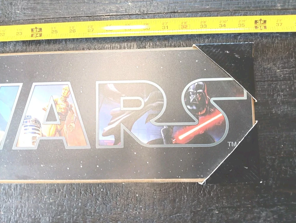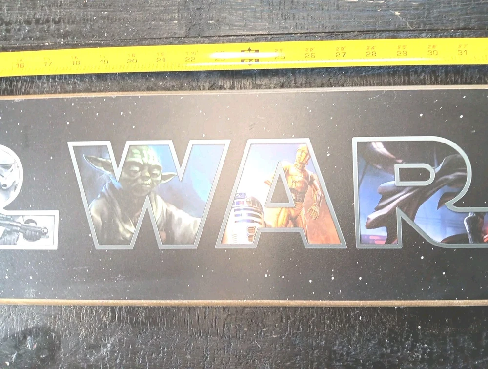 Add some intergalactic fun to your child's room with this Star Wars wall decor. Measuring 35 1/2 inches by 7 inches, this collectible is perfect for any young fan of the franchise. Featuring a bold design and vibrant colors, it's sure to brighten up any space. Whether you're a collector or just looking for a unique decoration, this Star Wars wall decor is a must-have. It's ideal for kids' rooms, game rooms, or any fan of science fiction and horror. Buy now and bring some galactic excitement to your home today!Thank you for viewing our listings. Feel free to make an offer if the price is too high. It costs 4.00 to 4.70 to ship a movie and by the time fees are taken out, we clear a buck or two usually despite having them sell for 9-10.00. It's easier to make a good deal on bulk if you're interested, let me know ahead of time your intentions and then I'm more willing to take less for items. Our merchandise is all guaranteed to be quality.