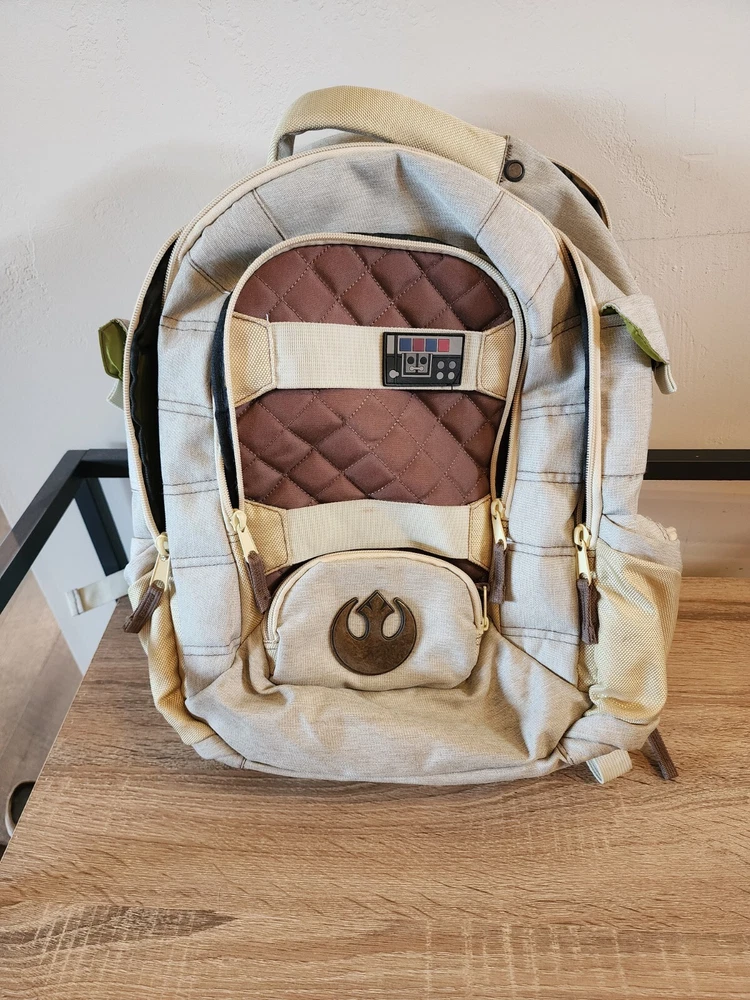 It's a really nice backpack. I used it for my D&D night for a year but kept it in good shape, and fully cleaned. It's a normal sized backpack it could be fine for an adult or an adolescent+. May the Force be with you.