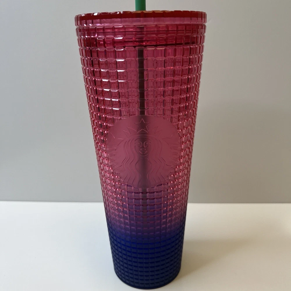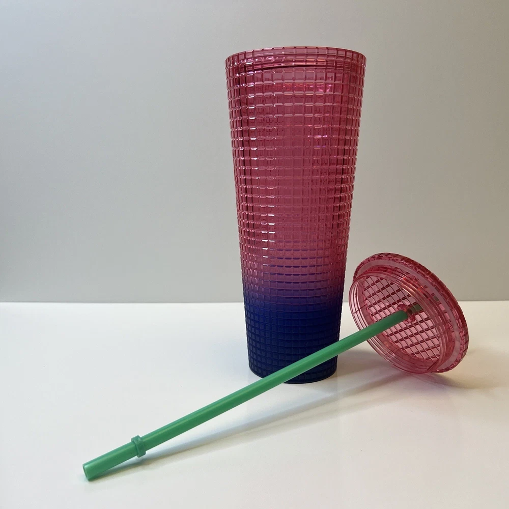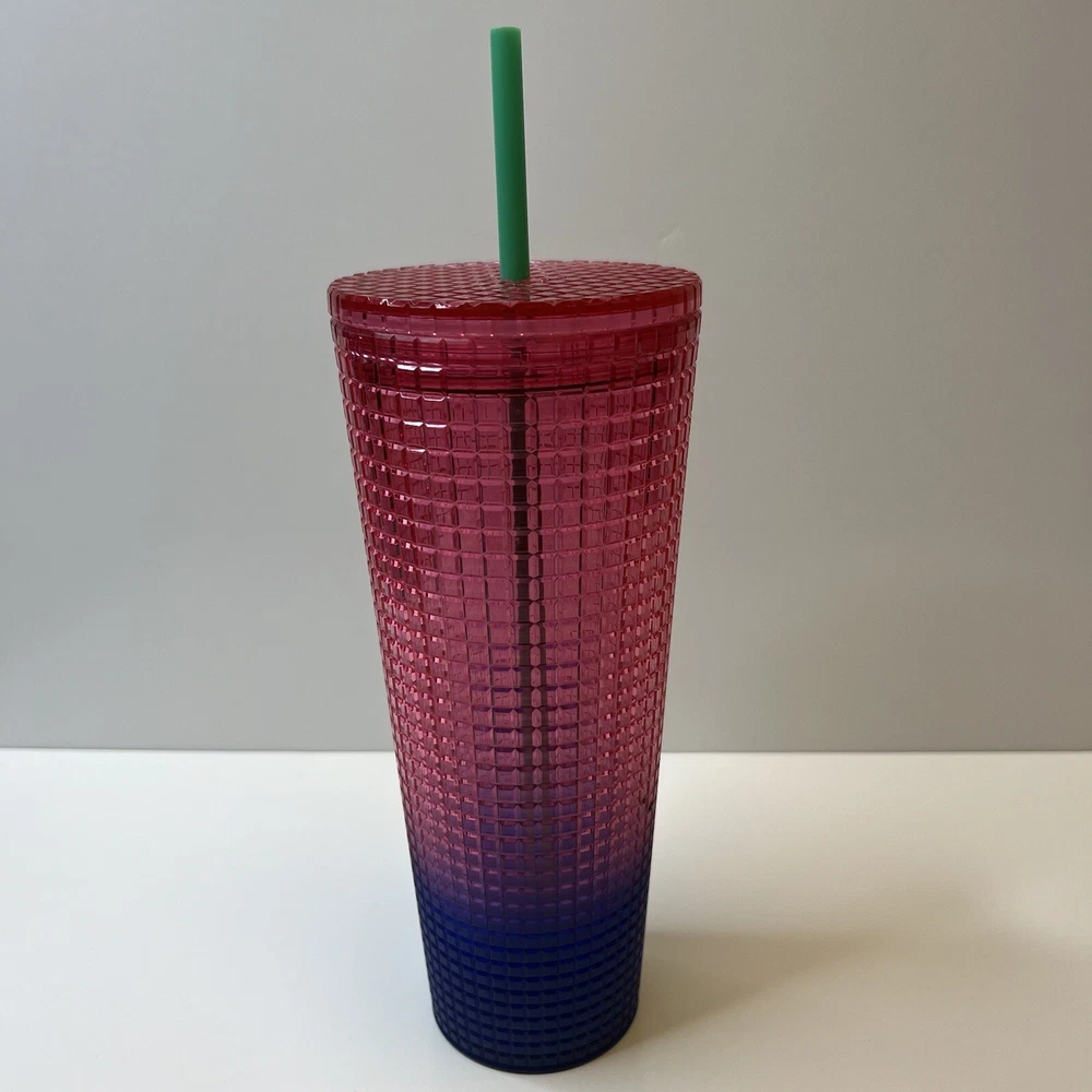 Starbucks 2022 Watermelon Pink Purple Gradient Grid 24oz Cup Venti Cold Tumbler