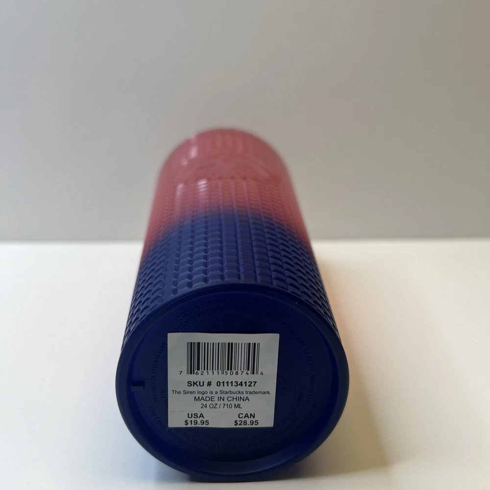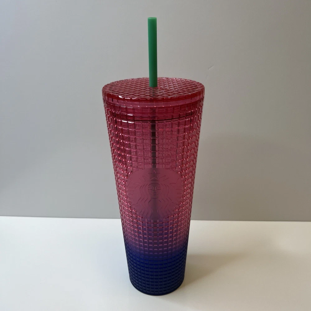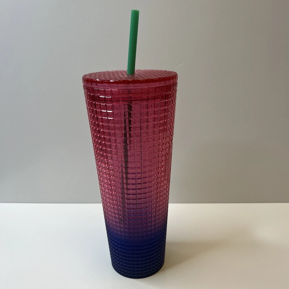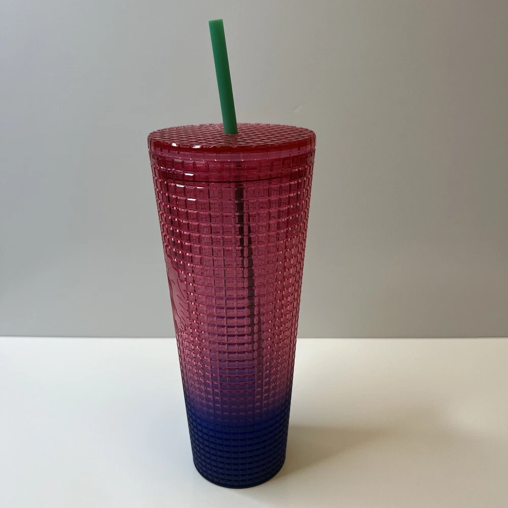 Starbucks 2022 Watermelon Pink Purple Gradient Grid 24oz Cup Venti Cold Tumbler