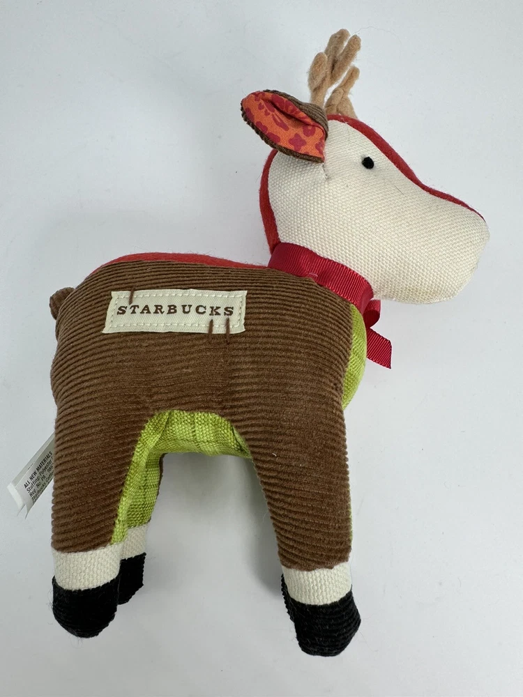 Add some festive cheer to your collection with this Starbucks Patchwork Reindeer plush toy. With its colorful patchwork design and cheerful expression, this 8-inch stuffed animal is perfect for both teens and adults. The reindeer features a multicolor finish and is part of the Animals collection, making it a great addition to any holiday or seasonal display. This original Starbucks plush toy was manufactured in 2008 and is in excellent condition, ready to be shipped to its new owner. The item length is 6.25 inches and the item height is 8 inches. Perfect for collectors of holiday and seasonal figurines, this reindeer is sure to bring a touch of animation to your home.