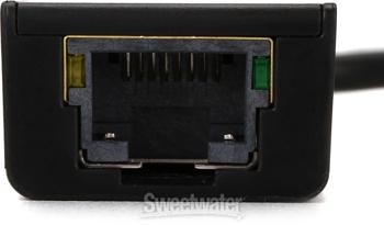 USB 3.0 to Ethernet Adapter Cable The Startech USB31000S USB 3.0 to Gigabit Ethernet Adapter lets you add a single RJ45 Ethernet port to a USB-enabled computer system, with support for gigabit network connections at full bandwidth. This expanded bandwidth surpasses that of standard USB 2.0 adapters, resulting in faster rates for data transmission. The USB31000S is also backward compatible with older USB 2.0/1.x systems and features support for Jumbo Frames, VLAN tagging, and Wake on LAN (WOL). A great gigabit network solution for your home or your business, this is a trusted cable here at Sweetwater.Startech USB31000S USB 3.0 to Gigabit Ethernet Adapter Features: Adapter cable lets you add a single RJ45 Ethernet port to a USB-enabled computer system Expands bandwith with support for gigabit network connections Backward compatible with older USB 2.0/1.x systems Supports Jumbo Frames, VLAN tagging, and Wake on LAN (WOL) Great gigabit network solution for Sweetwater is an Authorized StarTech.com Dealer Genuine New Item Sweetwater's 2-year warranty StarTech.com USB31000S USB 3.0 (Type-A) to Gigabit Ethernet Adapter USB 3.0 (Type-A) to Gigabit Ethernet Adapter USB 3.0 to Ethernet Adapter Cable The Startech USB31000S USB 3.0 to Gigabit Ethernet Adapter lets you add a single RJ45 Ethernet port to a USB-enabled computer system, with support for gigabit network connections at full bandwidth. This expanded bandwidth surpasses that of standard USB 2.0 adapters, resulting in faster rates for data transmission. The USB31000S is also backward compatible with older USB 2.0/1.x systems and features support for Jumbo Frames, VLAN tagging, and Wake on LAN (WOL). A great gigabit network solution for your home or your business, this is a trusted cable here at Sweetwater. Startech USB31000S USB 3.0 to Gigabit Ethernet Adapter Features: Adapter cable lets you add a single RJ45 Ethernet port to a USB-enabled computer system Expands bandwith with support for gigabit network connections Backward compatible with older USB 2.0/1.x systems Supports Jumbo Frames, VLAN tagging, and Wake on LAN (WOL) Great gigabit network solution for your home or your business Specification Detail Type USB 3.0 to Ethernet Adapter Data I/O 1 x Ethernet (Gigabit) USB 1 x Type A (male) Power Source USB bus powered RETURN INFORMATION We want you to be completely happy with your purchase from Sweetwater. If you are not satisfied with your product, you may return it for a refund of the purchase price within 30 days. If your purchase was eligible for Free Shipping, the shipping cost will be deducted from your credit or refund. Returns must be in the complete and original packaging with all accessories and complete documentation (Owner's Manual, warranty card, quick start guides, etc.), show no signs of wear or use, and include a Return Authorization number or be subject to a restocking fee.