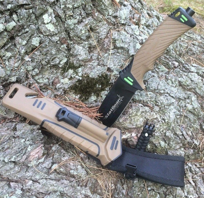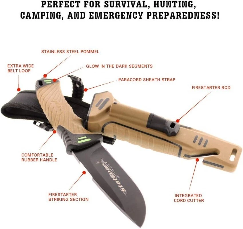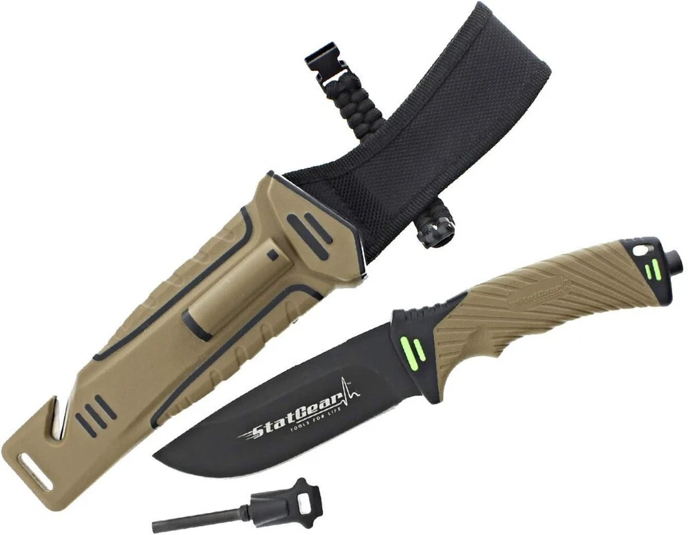 About this item StatGear survival outdoor knife is a stainless steel full tang knife. This durable knife can handle anything especially the tough outdoors. Features a drop point blade equipped with a blade sharpening stone in rear of sheath so your knife is sharp & sturdy consistently. Fire starter and cord cutter in sheath. The cord cutter works well for minor cuts so you don’t have to take out your knife. If you enjoy hunting and all other outdoor activities, you'll find the StatGear Surviv-All Outdoor Knife a convenient and practical choice for your go-to knife. Product information Style Style American Color Brown Measurements Item Weight 0.2 Kilograms Item Length 9.5 Inches Blade Length 4 Inches Features & Specs Blade Shape Drop Point Hand Orientation Ambidextrous Special Features Rust Resistant Power Source Corded Electric Materials & Care Blade Material Stainless Steel Product Care Instructions Hand Wash Only Handle Material Rubber On Feb 14, 2025 at 18:29:46 PST, seller added the following information: