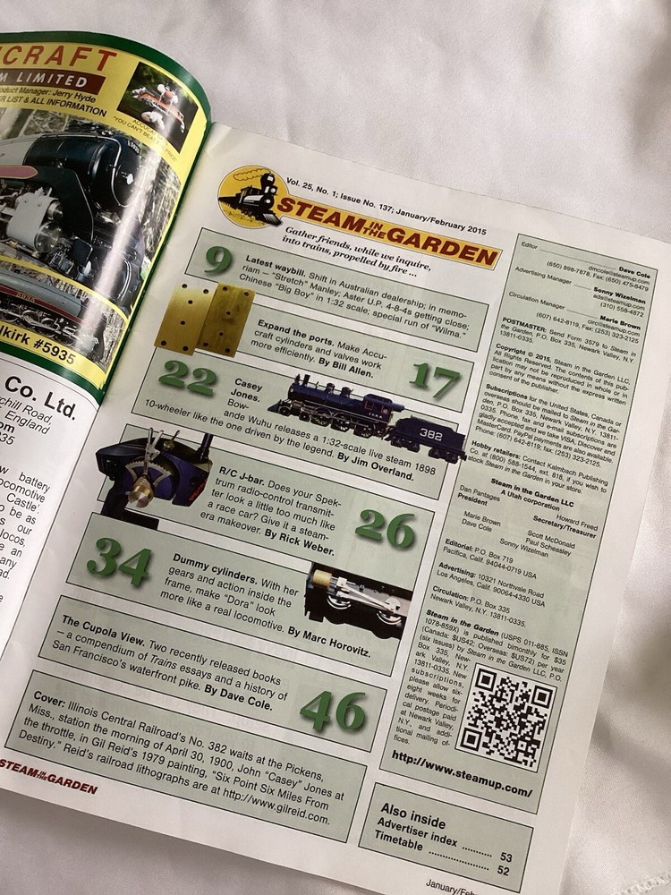 This Jan/Feb 2015 issue of Steam in the Garden magazine features Casey Jones. It is in good condition but has soft corners. Email with questions or for more pictures. The San Luis Obispo Railroad Museum, SLORRM, located in San Luis Obispo California is housed in the original 1894 Southern Pacific Railroad Freighthouse. We are currently raising money for new projects and appreciate your looking and bidding. If you are in the California Central Coast area, please stop by the museum or visit on-line.