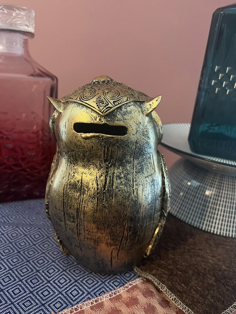NWT. Was received as a gift. No longer have space for it. This unique Steampunk Artemis Owl Coin Bank is a must-have for any collector or fan of the Clash of the Titans movie. Crafted from high-quality resin, this reproduction bank features intricate details that make it a standout piece. The bank is designed in the shape of the beloved owl and is perfect for storing your spare change or trinkets. Whether you're a fan of Steampunk, Clash of the Titans, or simply love unique collectibles, this bank is sure to impress. Its breakable design adds an element of danger and excitement to your collection, making it a great addition to any display or room.