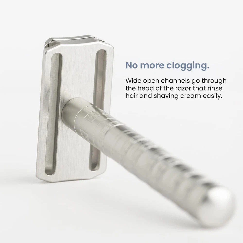 Unit Count 1.0 Count Special Feature Double Edge Skin Type All Number of Items 1 About this item Precision Engineering- Many men experience some form of irritation to the skin when shaving like razor burn, an inconsistent shave and ingrown hairs caused by inferior razors. At Henson, we've addressed this using our 22+ years of aerospace machining expertise to identify major flaws in mainstream razors, such as unsupported cutting blades, and designed the Henson Double Edge Safety Razor in a way that truly protects your skin 30° Blade Angle- Hensons single blade razors for men and women are designed with a 30 degree angle when in contact with the skin, this strikes the perfect balance between shaving efficiency and comfort. This helps minimize skin irritation cuts and razor burn, and allows you to shave with confidence Blade Rigidity & Free End Length - Rather than a gradual bend across the entire width of the blade, the head of the Henson razor creates a focused bend close to the blade’s edge to maximize the rigidity of the blade.The longer the blade the more flex it has which can result in skin irritation and an inferior shave. Our short free end length supports the blade close to the cutting edge, further reducing any chatter during a shave Wide Open Channels - Henson AL13 razor is beginner friendly and easy to clean. Its sleek, open channels let shaving creams and hair rinse effortlessly from the razor’s head, eliminating the need to clear off any clogged hair left from the blade
