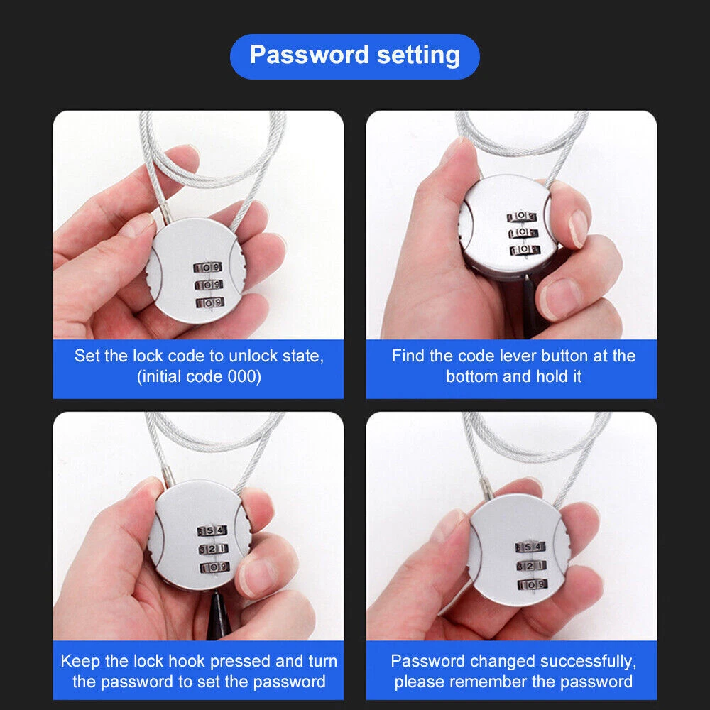 Describe: [Flexible and safe]: The cable lock can handle situations that ordinary shackles simply cannot handle. The cables of our locks are thin enough to pass through all standard-size zippers and hard-shell keyholes, but strong enough to protect your belongings. With an ideal end-to-end length of 4 inches and a closed length of 1.5 inches, our cables provide flexibility. [Wide range of applications]: In addition to bicycles, motorcycles, electric vehicles, helmets, luggage or suitcases, it can also be used for various items. These padlocks can be used for backpacks, suitcases, gym lockers, pelican bags, gun cases, briefcases, tool cases or laptop bags. [High-energy material]: The steel wire in the PVC bag of the metal lock body is made of 304 stainless steel, and the outer layer is more sturdy. The outer layer is wrapped in PVC, which does not hurt the body or the hand. The lock shell can achieve additional durability and lightness at the same time; it does not affect the weight of the luggage; this This lock is very comfortable to use for hand luggage used by multiple people. [Easy operation]: You can easily set your own combination by simply pressing the switch. Enter the factory default combination 000, and use the pen to flick the switch to the right. Enter your new combination and flick the switch back to the left. Setting up your combination is that simple. Parameter: Material: zinc alloy, PVC, galvanized steel wire Color: black, silver, blue, red, green, yellow List: Padlock*1 Juicer Juicing Screen Simple Maintenance for 8003 8004 8006 Smooth Filtering 22.99 USD Free shipping Automatic Rolling Ball Smart Cat Dog Toy Electric Pet Self-Moving (RED) 2025 14.39 USD Free shipping 6PCS Christmas pins Brooch Lot Santa Christmas Tree Rhinestone Holiday Party New 19.34 USD Free shipping Women's Sexy Lingerie Sleepwear Babydoll Underwear Lace Dress G-String Nightwear 14.39 USD 50.0 USD Super 1800mAh Waterproof Bicycle Bike Lights Bright Front Rear Rechargeable NEW 11.99 USD 52.99 USD Silver Bike Short Stem 28.6mm Component Part 22.2mm Handlebar Stem for BMX 24.99 USD 50.0 USD Water Bottle Holder Beverage Carrier Bike Cup Holder Bike Handlebar Stem Bag for 15.99 USD 50.0 USD Bike Chain Guide Single Speed Chain Avoid Dropping Black Protection Clamp for 8.19 USD 50.0 USD Front Light Holder Bike Headlight Bracket Mount Bike 12.64 USD 50.0 USD Bike Computer Mount Bicycle Handlebar Mount Universal Speedometer Bracket for 12.49 USD 50.0 USD For i16 Pro Mini Unlocked Flip Mobile Phone 2 SIM Card Small Display Foldable 25.89 USD 24.98 USD iPad Laptop Holder Tablet Multi-Angle Soft Pillow Lap Read Stand Phone Cushion 11.99 USD 52.99 USD IENYRID-M4 Pro S+ 12.5Ah E-Scooter|28mph 31mi 330lbs 10" Off-Road 1Yr Wty 48V 509.0 USD Free shipping AOKDA A1 8OOW Electric Scooter Up to Speed 28Mph 10in Folding Commuter E-Scooter 469.0 USD Free shipping Adult Electric Scooter Foldable 700W 10" Off Road Tires E-Scooter Double Brake 599.0 USD Free shipping 2OOOW Dual Motor Electric Scooter 10"Off Road Tires 48V 20.8Ah 34mph 34Mi Range 869.0 USD Free shipping 700W Folding Motor 48V/15Ah Adult Electric Scooter 10" Road Tire E-Scooter 28MPH 999.0 USD Free shipping Electric Scooter for Adult 8OOW Motor, Max 20 Miles Long Range, 28Mph 48V/12.5Ah 599.0 USD Free shipping iENYRID Electric Scooter For Adult Seat 800W Motor 28MPH 30 Miles City E-Scooter 489.0 USD 34.9 USD 31 Miles Rang Adult Electric Scooter Dual SUSPENSION & BRAKES E Scooter 28 mph 422.09 USD 47.99 USD IENYRID Max M4 Electric Kick Scooter Foldable (31 Mile Range/28mph Top Speed) US 539.99 USD Free shipping Electric Scooter Long Range for Adult Kids Fast Speed Commuter Kick E-Scooter US 509.0 USD Free shipping Electric Scooter 25 Miles Range 700W Foldable Fast Speed E-Scooter W/Turn Signal 529.99 USD 39.0 USD 700W 48V 15Ah Foldable Motor Adult 10" Electric Scooter E-Scooter 40KM/H 28MPH 599.0 USD Free shipping 2OOOW E-Scooter Fast Powerful Urban Commuter Long Range 2 Wheel Electric Scooter 869.0 USD Free shipping 700W Electric Scooter Long Range 45KM Folding E-Scooter Adult Urban Commuter US 599.0 USD Free shipping 2OOOW 48V 20.8AH 45MPH Folding Electric Scooter Adult Dual Motor 10" Road Tire 599.0 USD Free shipping 10" E-Scooter 28MPH 25Mi 700W Motor Folding Electric Scooter Off-road 48V/15Ah 599.0 USD Free shipping iENYRID M4 Pro S+ Folding Electric Scooter for Adults 800W Motor 28MPH E-Scooter 519.0 USD Free shipping 800W Electric Scooter for Adult 48V12AH 28MPH 10'' Off-road Commuting E-Scooter 509.0 USD Free shipping