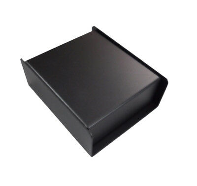 18 ga. steel project box 3-3/4" wide x 4 1/2" long x 1 5/8" tall overall . Unit is pre-punched for two Neutrik "D" series connectors, two on one side. Durable powder coated finish, black.