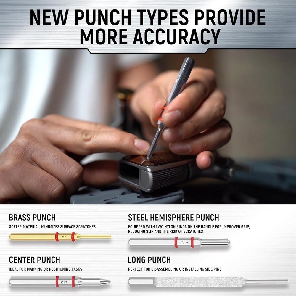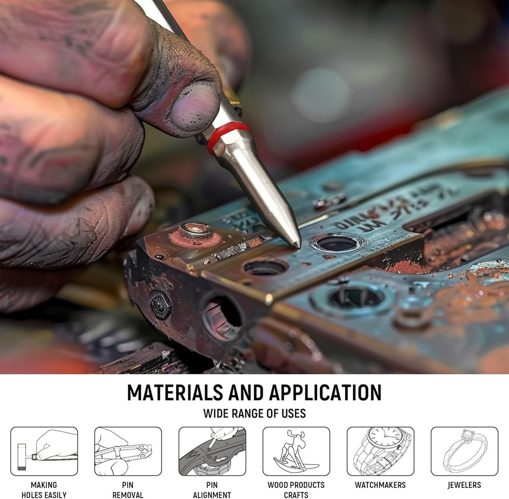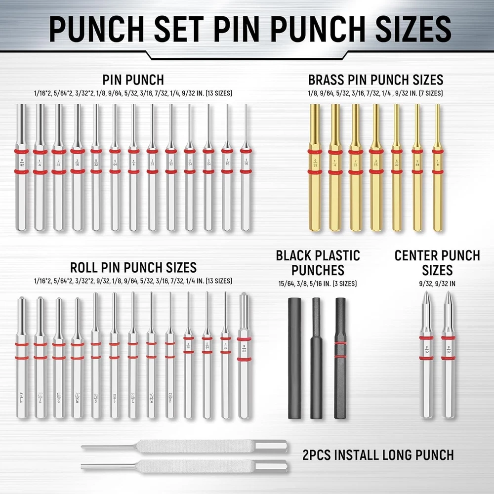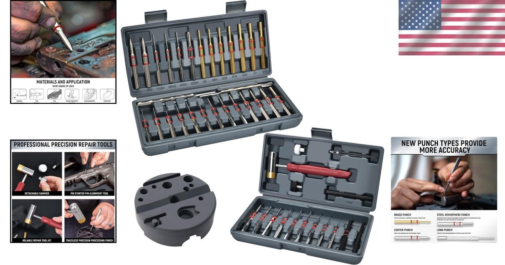 Steel and Brass Mechanical Repair Tool Set - 40PCS Punch Kit ‹ › ‹ › ‹ › ‹ › ‹ › ‹ › ‹ › ‹ › ‹ › ‹ › Steel and Brass Mechanical Repair Tool Set - 40PCS Punch Kit Overview: Elevate your crafting and repair endeavors with our meticulously crafted Steel and Brass Mechanical Repair Tool Set. This comprehensive 40-piece punch kit blends precision engineering with high-quality materials, making it the ideal addition to both your professional toolbox and home workshop. Key Features: 7 Brass Punches: Crafted from high-quality brass, these punches are inherently soft, resistant to scratches and dents, ideal for fine metalworking. Their reliability and precision are essential for your intricate tasks. Comprehensive Package: This set includes everything you need - a universal workbench block, 40 assorted punches, metal tweezers, and a versatile hammer featuring 4 removable heads. Designed for durability with heat-treated, drop-forged, knurled steel for superior performance. Versatile Hammer: Our gun-style punch tool comes with a chrome-plated steel head and 4 interchangeable hammer heads (brass, chrome-plated, white nylon, and black rubber) allowing for flexibility to cater to all your project needs. Durable Workbench Block: Protect your tools with a specially treated block that shields against scratches during drifting and riveting operations. Designed with easy usability and precision in mind, ensuring efficiency in your work. Convenient Storage: Each punch is neatly organized within two blow boxes, engraved with corresponding sizes for easy identification and swift access, improving your workflow and efficiency. Why Choose Our Punch Kit? Investing in the Steel and Brass Mechanical Repair Tool Set means choosing reliability, precision, and supreme quality in one comprehensive package. Enhance your tool collection with punches designed to execute fine metalworking tasks flawlessly. Whether you’re a craftsman, DIY enthusiast, or a professional in need of precision, this kit delivers unmatched performance and ease of use. Get ready to take on your next project with confidence - order your Steel and Brass Mechanical Repair Tool Set today! Shipping Free & Fast Shipping - We offer free shipping to most of the USA with a normal delivery time of 3-10 business days. However, due to various situations, additional delivery time (up to 3 weeks) may be required for some items. Alternative Carriers - We may use alternative carriers (e.g. USPS, FedEx, UPS, etc.) to ensure your package arrives safely and on time. Due to the use of multiple carriers, we are unable to provide a tracking number automatically. Handling Time - Orders are processed and shipped within 1-5 business days of receiving cleared payment. Shipping Restrictions - Shipping to Alaska, Hawaii, Puerto Rico, Guam, and other US territories may incur shipping charges or delivery restrictions. Please contact us before ordering, or your order can be refunded/cancelled. State Restrictions - There may be restrictions based on your state of purchase. For example, certain items may not be shipped to California due to state regulations. Contact for Tracking Updates - If you require tracking updates or have any concerns about the delivery of your order, please feel free to contact us, and we will be happy to assist you. Return 30-Day Hassle-Free Returns - We want you to be completely satisfied with your purchase. If you are not, you can return the item within 30 days of receiving it for a full refund or exchange. Easy Return Process - To start a return, simply contact us and we will provide you with a prepaid return shipping label and detailed instructions. Restocking Fee - There are no restocking fees for returns. However, the buyer is responsible for return shipping costs if the return is not due to a seller's error. Refund Processing Time - Refunds will be processed within 5 business days of receiving the returned item in its condition. Payment We accept all major credit cards, PayPal, and Apple Pay for your convenience. Your payment information is secure and encrypted to ensure a safe and seamless transaction. Please complete your payment within 3 days of purchase to avoid any delays in shipping. Feedback Your feedback is extremely important to us. We strive to provide the best products and customer service possible. If you are satisfied with your purchase, please take a moment to leave us a positive review. If you have any concerns or issues with your order, please contact us before leaving negative feedback. We are committed to resolving any problems and ensuring your satisfaction. Contact Us If you have any questions or concerns, please feel free to out to our customer support team. You can contact us through the eBay messaging system. We are available Monday to Friday, 9:00 am to 5:00 pm EST, and we will do our best to respond to your inquiry within 24 hours. Buy it now and enjoy a pleasant shopping experience! Item Diameter: 13.3 Item Weight: 4.64 pounds Unit Quantity: 1 Material: Brass,Rubber,Steel,Nylon,High Carbon Tool Alloy Hardened Steel Type: Punch Set Number of Pieces: 40 Color: Gray