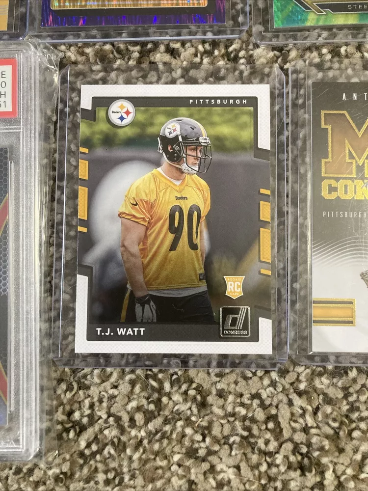 This rare lot of Steelers cards includes an autographed trading card, a jersey, and a Mint 10 graded card. The cards feature the Pittsburgh Steelers team and are perfect for any collector or fan of the National Football League (NFL). The autographed card is a great addition to any collection, and the jersey is made in the country/region of manufacture. This lot is a must-have for any sports trading card enthusiast and is sure to impress.