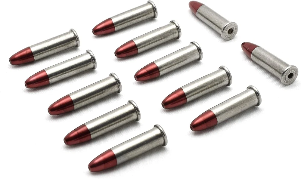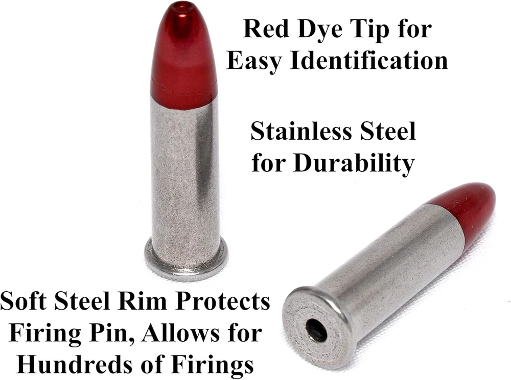 Practice safe loading, firing, misfiring Loads as real ammo, allows for safe storage Dimensions and weight of real ammunition Precision Stainless Steel construction with soft steel rim Includes 12 stainless steel rounds