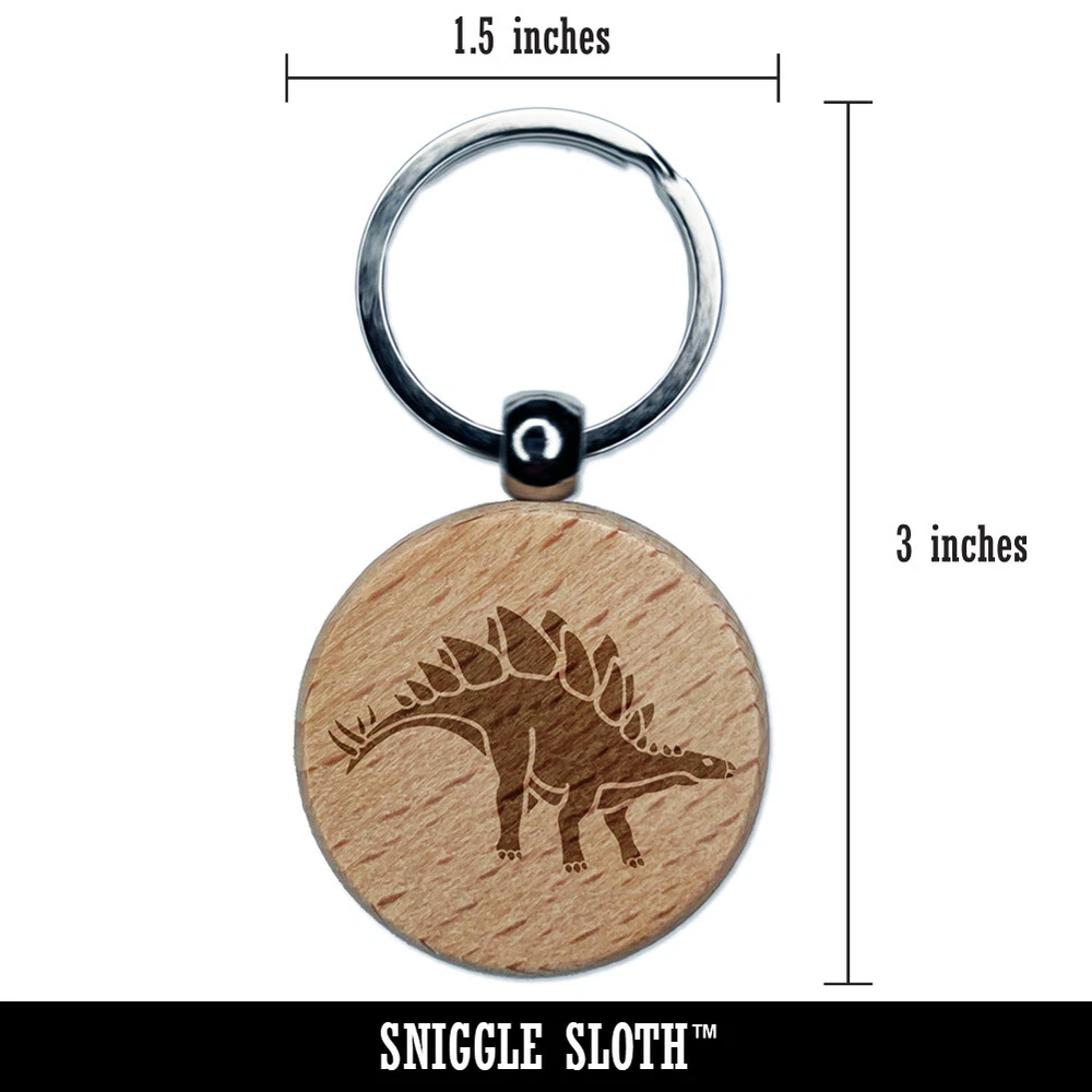 Stegosaurus Dinosaur Engraved Wood Round Keychain Tag Charm