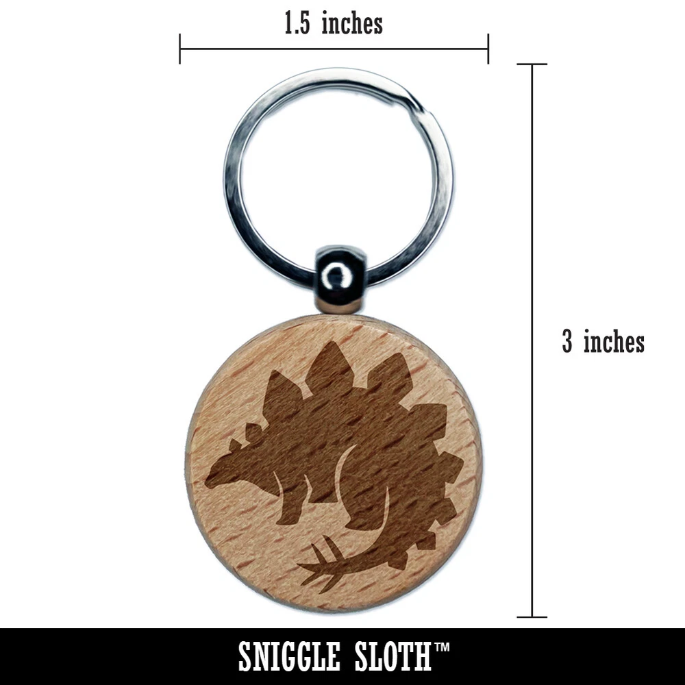 Stegosaurus the Spikey Dinosaur Engraved Wood Round Keychain Tag Charm
