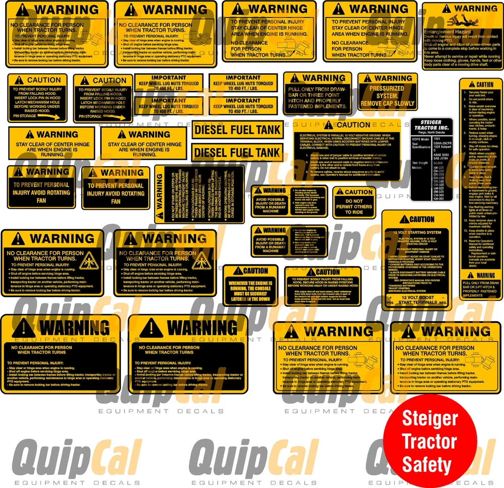 This listing is for 1 Steiger Bearcat II marking set. We also have decal sets for the full Steiger tractor lineup as well as later model Case IH Steiger Tractors. Decals for Versatile, Ford, John Deere, Case IH Case Oliver, White, Massey Ferguson, and other brands of Ag Tractors and Implements. Contact us today for any decal set you need Durable, Laminated decals designed for use on heavy construction and agricultural equipment. Count on Quipcal to deliver: Prompt, Knowledgeable, Reliable Service. The Decals you need for all your heavy construction, agricultural, forestry, lifting and industrial equipment. 40 years of experience in helping Contractors, Dealers, Farms and Ranches, Equipment Repair and Paint shops, Auction Companies and Private owners in all 50 states and around the world