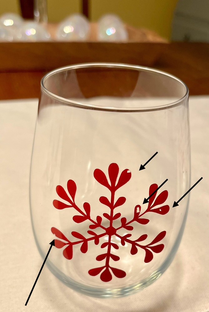 These cute wine glasses are perfect for the holidays. Please note snowflake on 2 glasses are slightly worn. Please see pics for accurate representation of condition. Stored in a smoke free, pet free home.