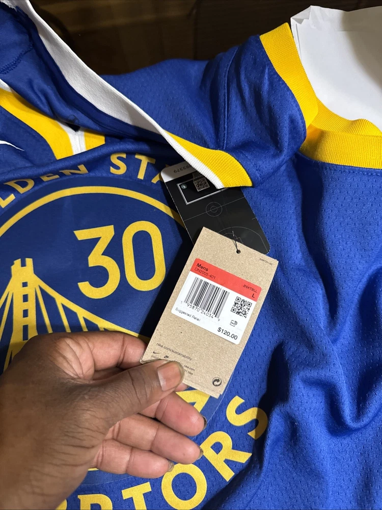 Officially Licensed:YesSport:BasketballSize:LBrand:NikePlayer:Stephen CurryTeam:Golden State WarriorsColor:BluePre & Post Season:Regular SeasonProduct:JerseyLeague:National Basketball Association (NBA)Gender:MenCountry/Region of Manufacture:Guatemala