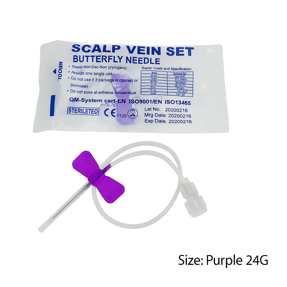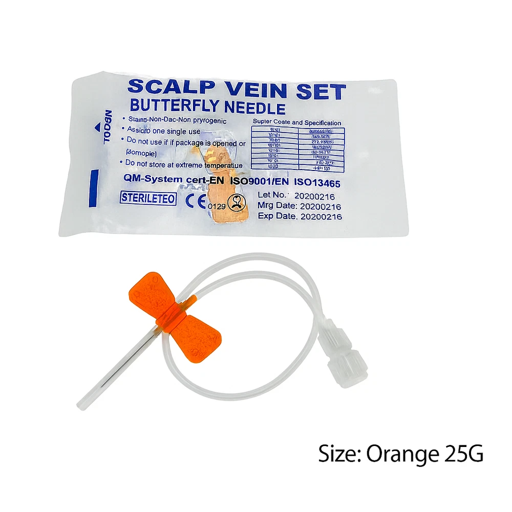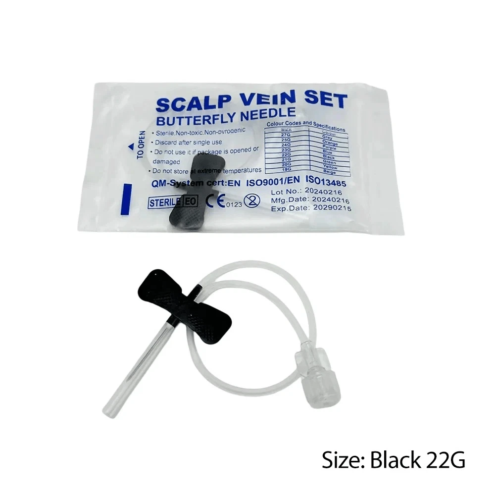 π©Ί Sterile Butterfly Needles β Winged Infusion Sets β Multi-Gauge Options β Box of 50 Upgrade your blood draw and IV procedures with our premium sterile butterfly needles. Available in multiple gauge sizes, these winged infusion sets offer comfort, control, and reliability for medical professionals and clinical use. β Available Sizes (Color-Coded): 21G β Green 22G β Black 23G β Blue 24G β Purple 25G β Orange 26G - Brown π¦ Product Details: Box of 50 individually packaged, sterile needles Non-toxic, non-pyrogenic, and latex-free Flexible color-coded wings for secure grip and easy identification Transparent kink-resistant tubing Universal Luer connector for compatibility with most systems For single use only π Ideal For: Phlebotomy, IV infusion, blood collection, and professional healthcare settings. Fast USA shipping. Select your preferred size from the dropdown menu before checkout.