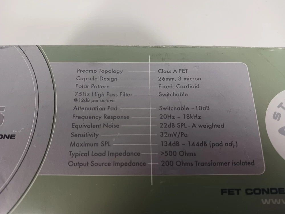 The Sterling Audio ST55 FET Condenser Microphone Preamp is a top-quality device that guarantees an exceptional audio experience. This preamp features a Class A Fixed Cardio topology that ensures superior sound quality. It also has an XLR 3 Pin and wired connectivity that makes it easy to connect to different devices. Additionally, this preamp is designed to cater to the needs of different users, especially those who are looking for a high-quality microphone preamp. With its brand, Sterling Audio, you can be assured of its durability and reliability. This device is perfect for musicians, producers, and sound engineers who want to take their audio to the next level. ____________________________________________________________________________________________________________ FAST & FREE SAME DAY SHIPPING. Barely USED. Very Good Pre-Owned Condition. Clean, tested, and works. Shows minimal signs of wear. Stored in a pet & smoke free home. Please do not assume something to be included in this sale, Such as something that is not shown in the pictures or something that is not mentioned to be included. Includes: original box only.