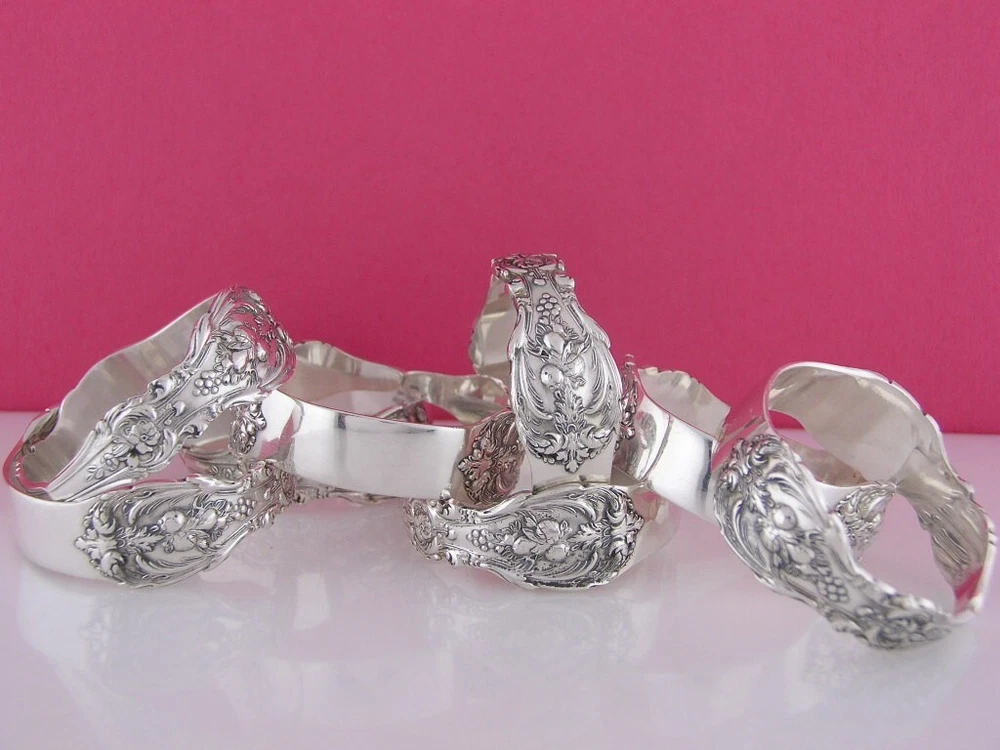 Sterling Silver - Reed & Barton - Francis I - Napkin Ring - weighs 0.60 troy ozs. Please Note: The photo shows 8 napkin rings, but this listing is for 1 napkin ring only up to the quantity available. Thank you. Marked: Reed & Barton, STERLING. Measurements: 1 3/4" by 1 3/4" by 5/8" in width. Monograms: none. Condition: Great Condition. FREE SHIPPING IN THE USA ONLY!! Any dark spots are only shadows from taking the pictures. Thank you.