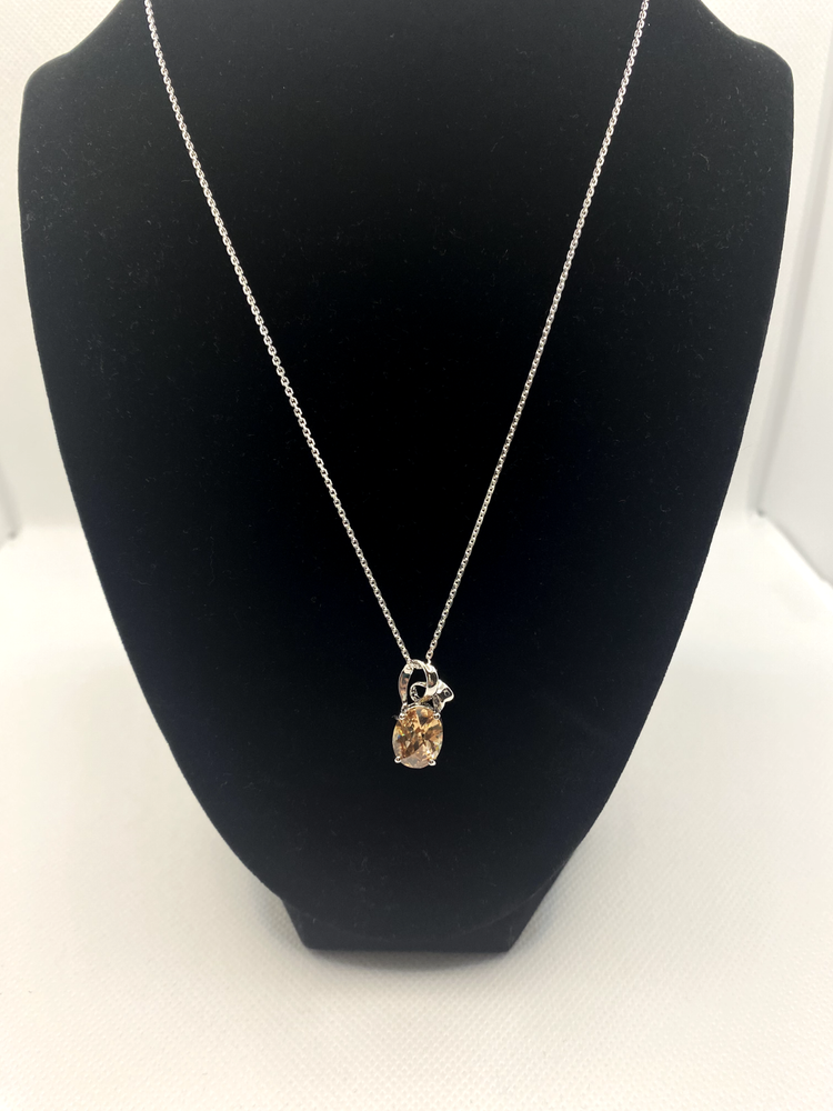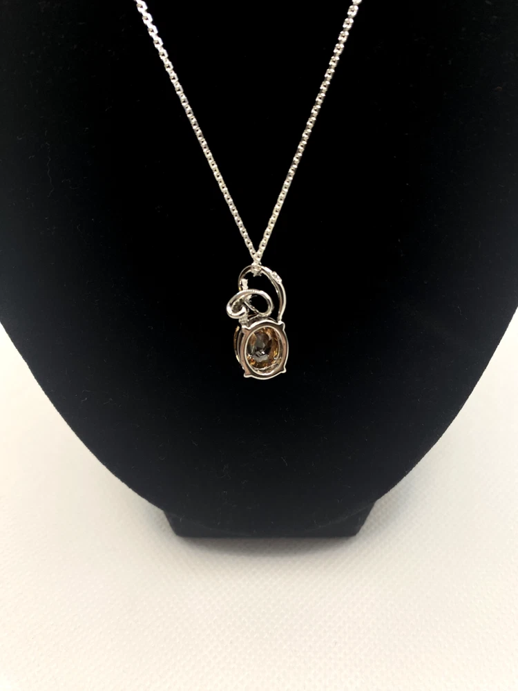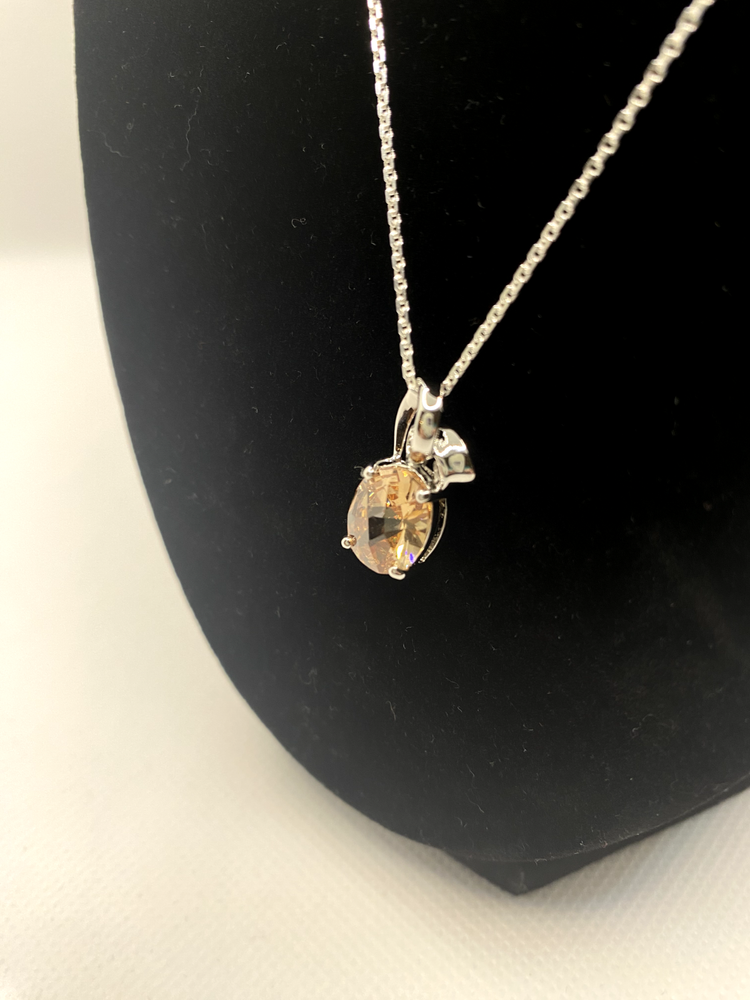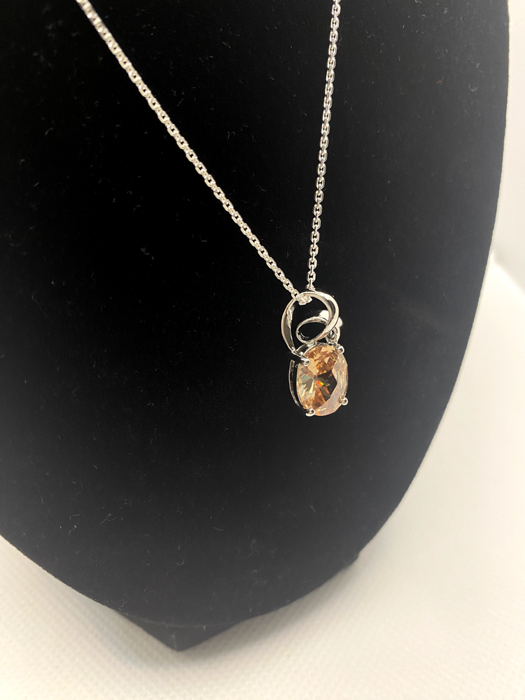 18" Sterling Silver Necklace w/ Champagne CZ Pendant Rhodium Plated Shiny Pretty See photos for the actual item available. Feel free to contact me with any questions. Elevate your style with this stunning 18" sterling silver necklace featuring a champagne CZ pendant. The oval-shaped pendant is set in a prong style and has a width of 9mm. The necklace is sterling silver rhodium-plated, giving it a shiny and pretty finish. Perfect for any occasion, this necklace is ideal for engagements, graduations, birthdays, and more. The necklace is 18" long and comes with a spring ring closure. The cable chain type adds a touch of elegance to the piece. This necklace is a great addition to any jewelry collection and is sure to make a statement. Shop our store with confidence as we offer 30-day returns on all purchases. Additionally you can save money by making multiple purchases to take advantage of our discount shipping policy. You will pay the highest shipping cost for a single item in your cart and $3 for each additional item.